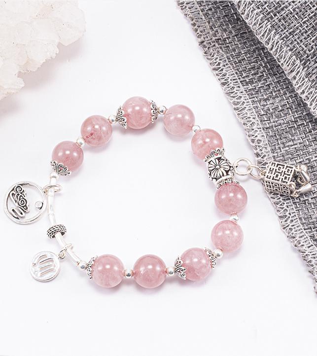 - Vòng Tay Thạch Anh Dâu Mix Tím Ngọc Charm Hoa Mặt Trời Ngọc Quý Gemstones VT109 mang màu hồng nhẹ nhàng, chứa năng lượng bổ trợ mạnh mẽ về tình duyên, cải thiện các