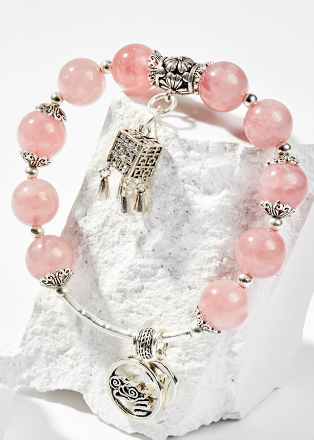 Từ xưa đến nay đá thạch anh hồng được xem như viên đá có khả năng làm tan chảy trái tim của biết bao phụ nữ với vẻ ngoài, thanh lịch và nhẹ nhàng, gửi đến người đeo những cung bậc tinh cảm khác nhau, luôn hạnh phúc và vui vẻ. Ngoài ra, viên đá còn giúp thu hút tài vận, cải thiện khả năng giao tiếp và kinh doanh. Vòng Tay Phong Thủy Đá Thạch Anh Hồng Phối Charm Đèn Lồng Bạc (10mm) Mệnh Hỏa, Thổ được làm từ đá thạch anh hồng và là viên đá không thể đối với chị em phụ nữ.