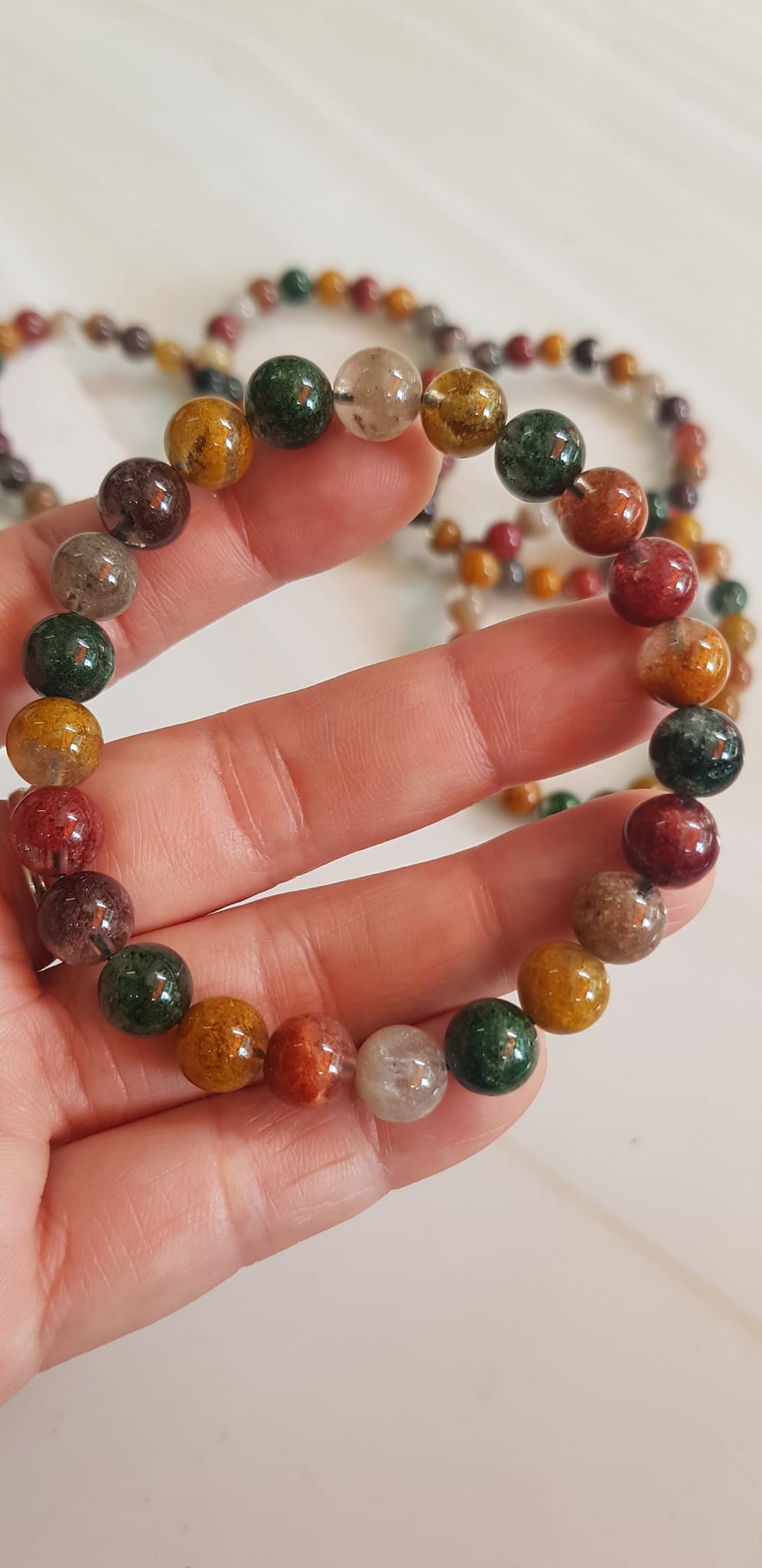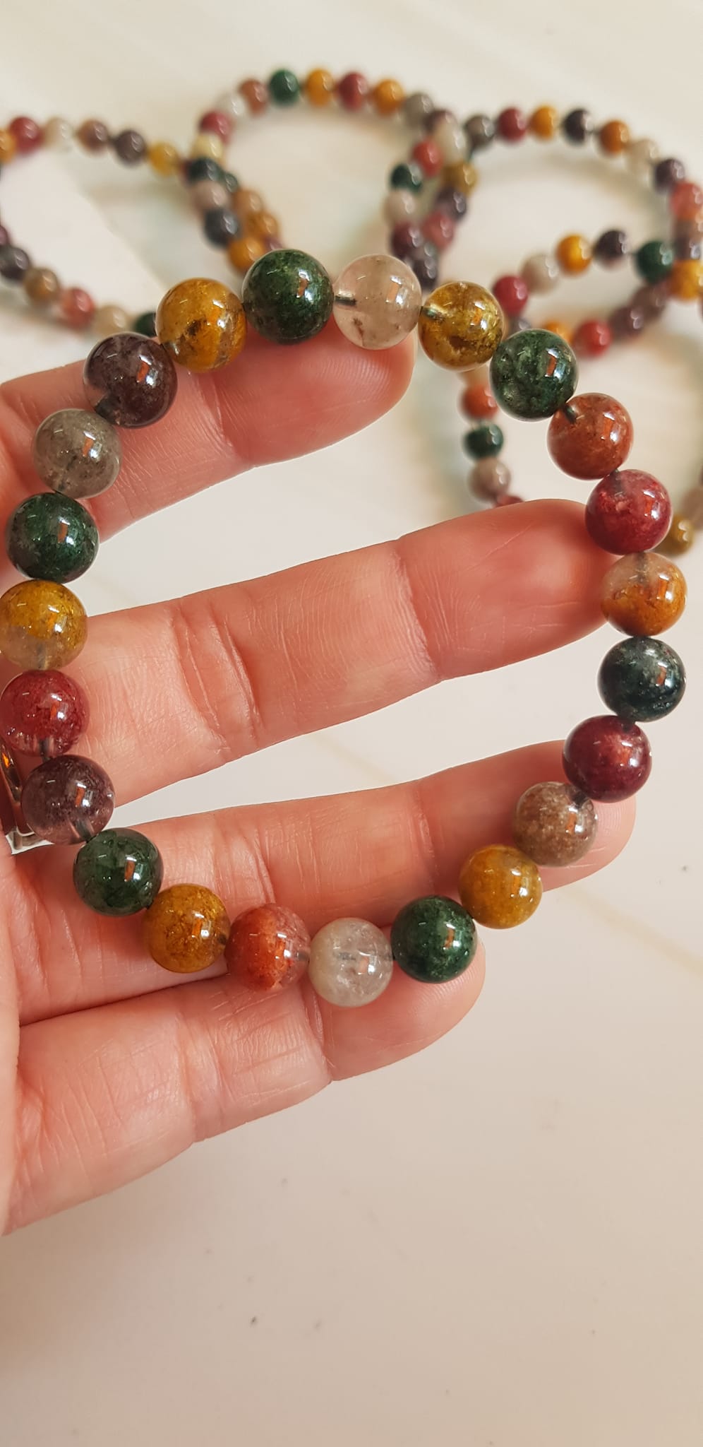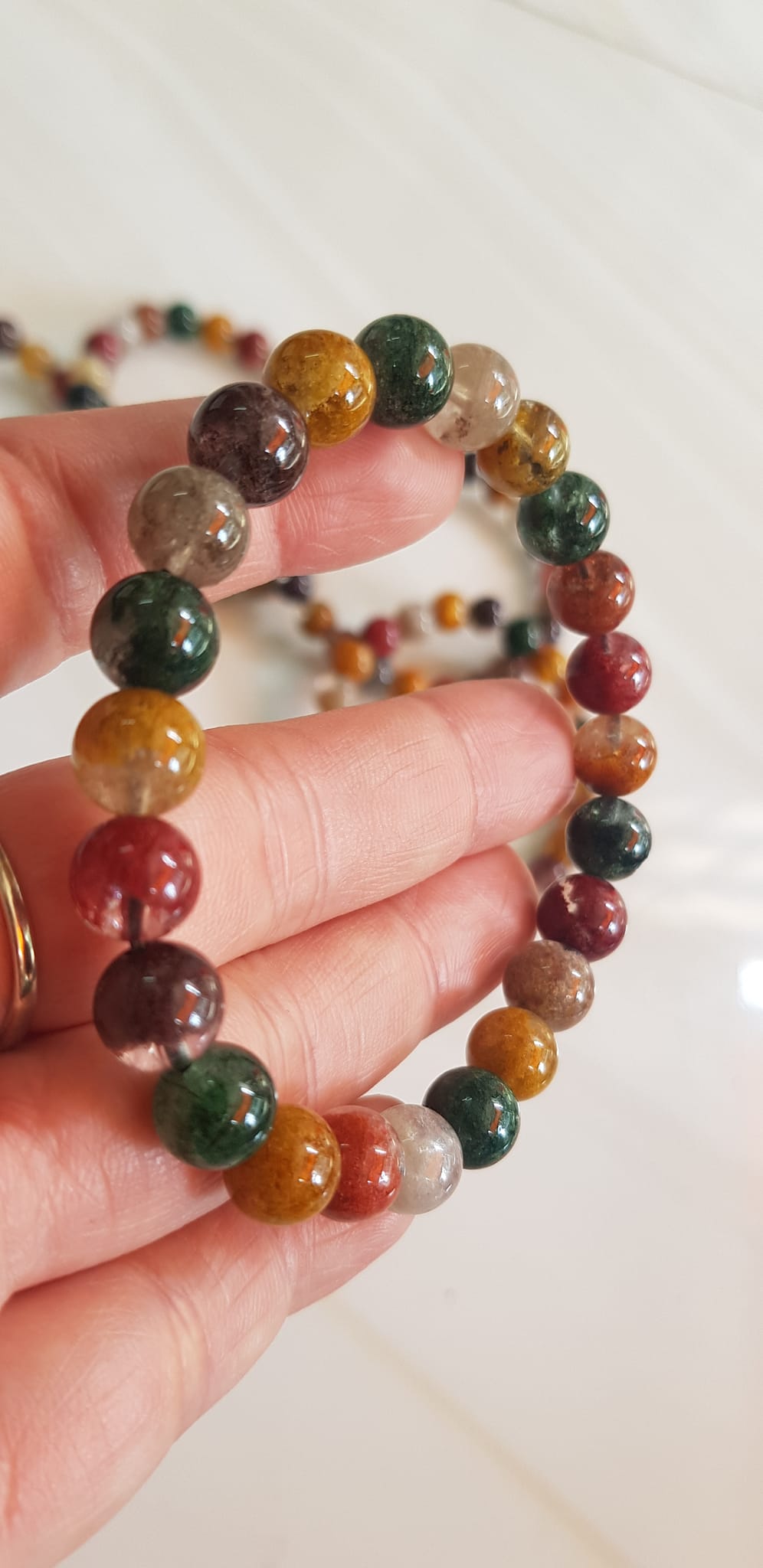 ✨Vòng tay phong thuỷ may mắn đá Thạch anh Ưu linh đa sắc Size hạt 8mm đá Ưu linh đẹp sang trọng của đá thạch anh tự nhiên đa sắc giúp xua tan mệt mỏi, đem đến năng lượng tích cực may mắn tài lộc cho gia chủ ,tăng sự quyến rũ sang trọng cho phái đẹp ạ