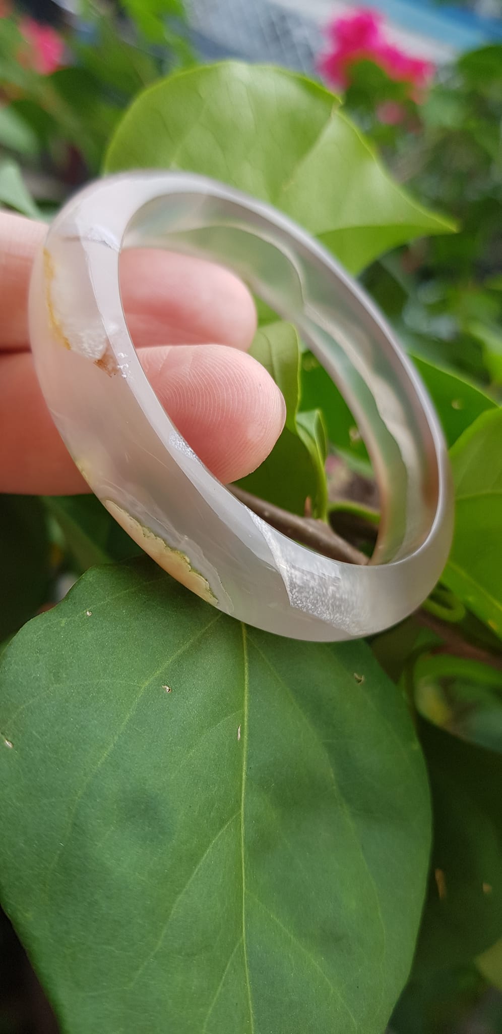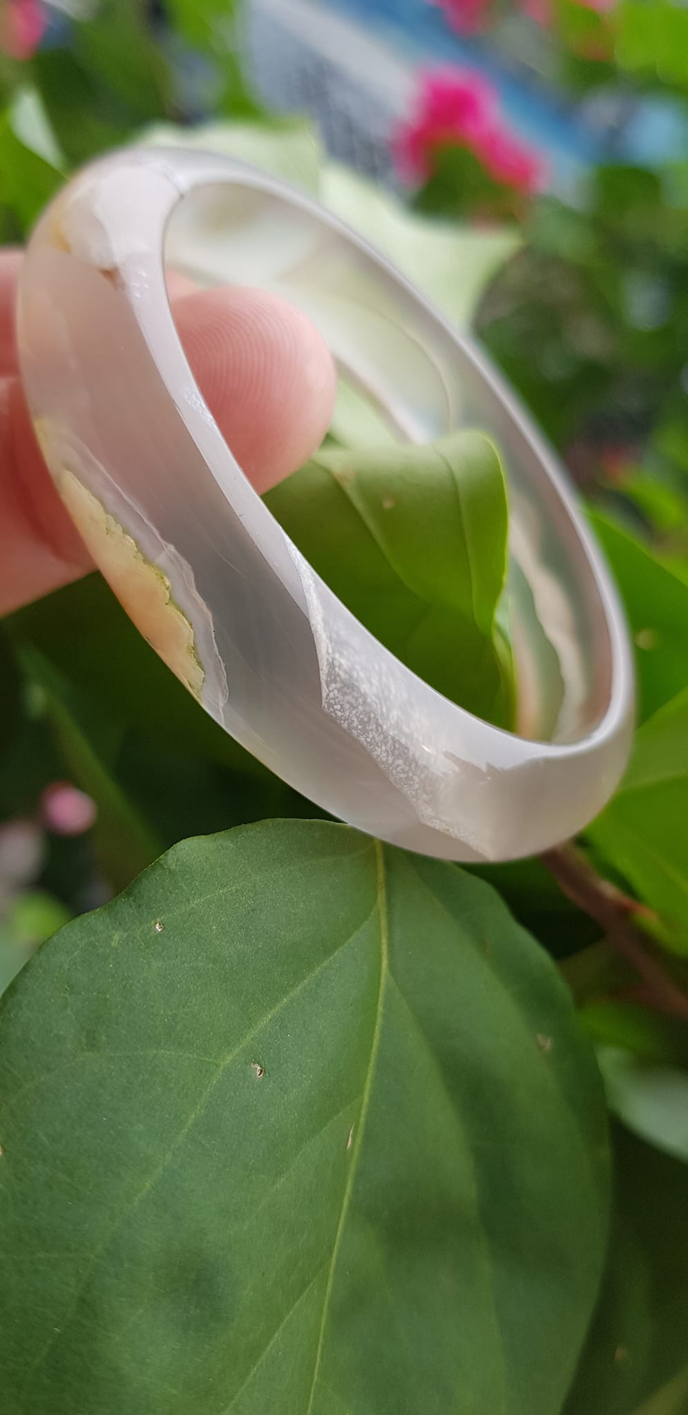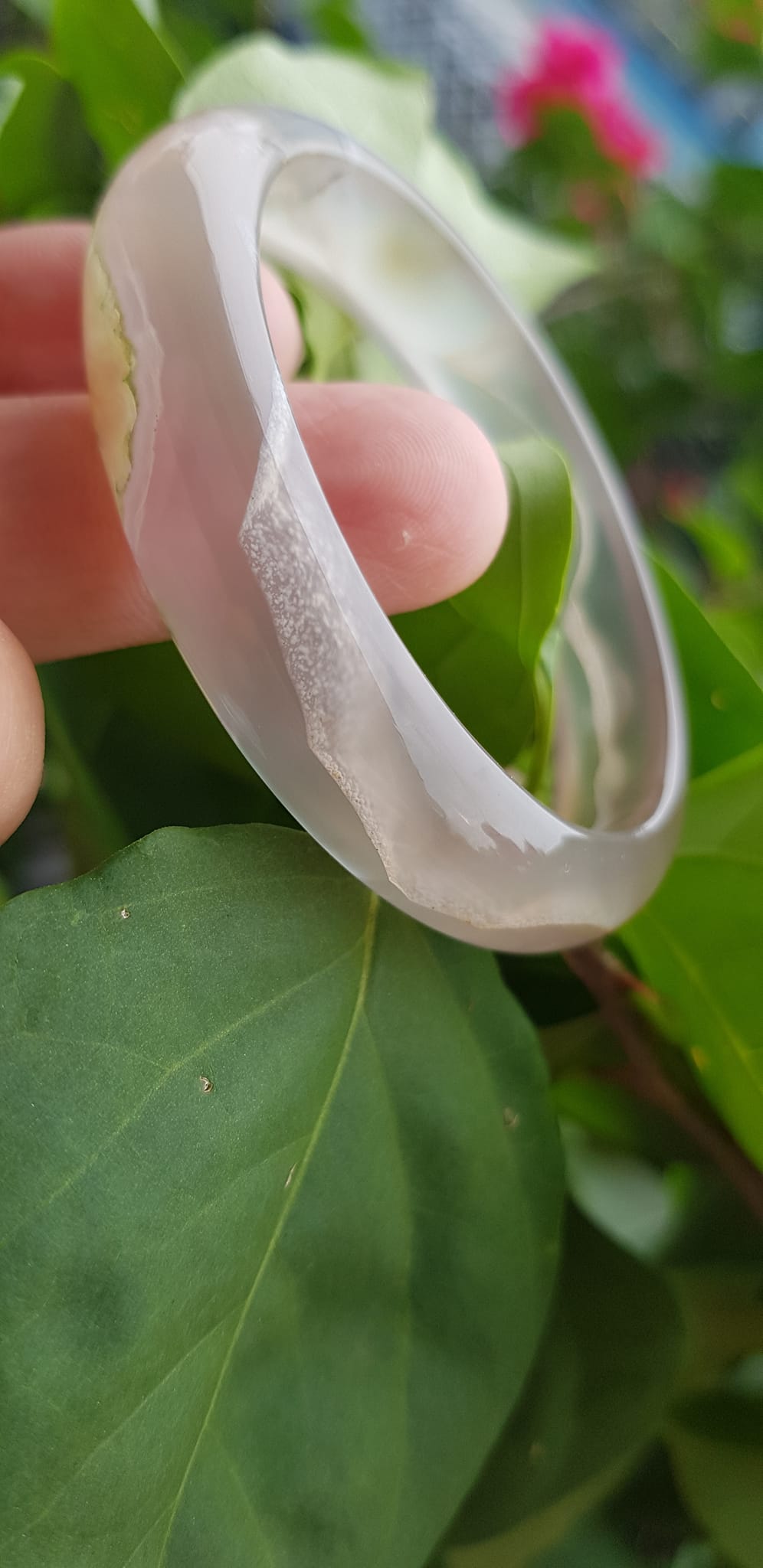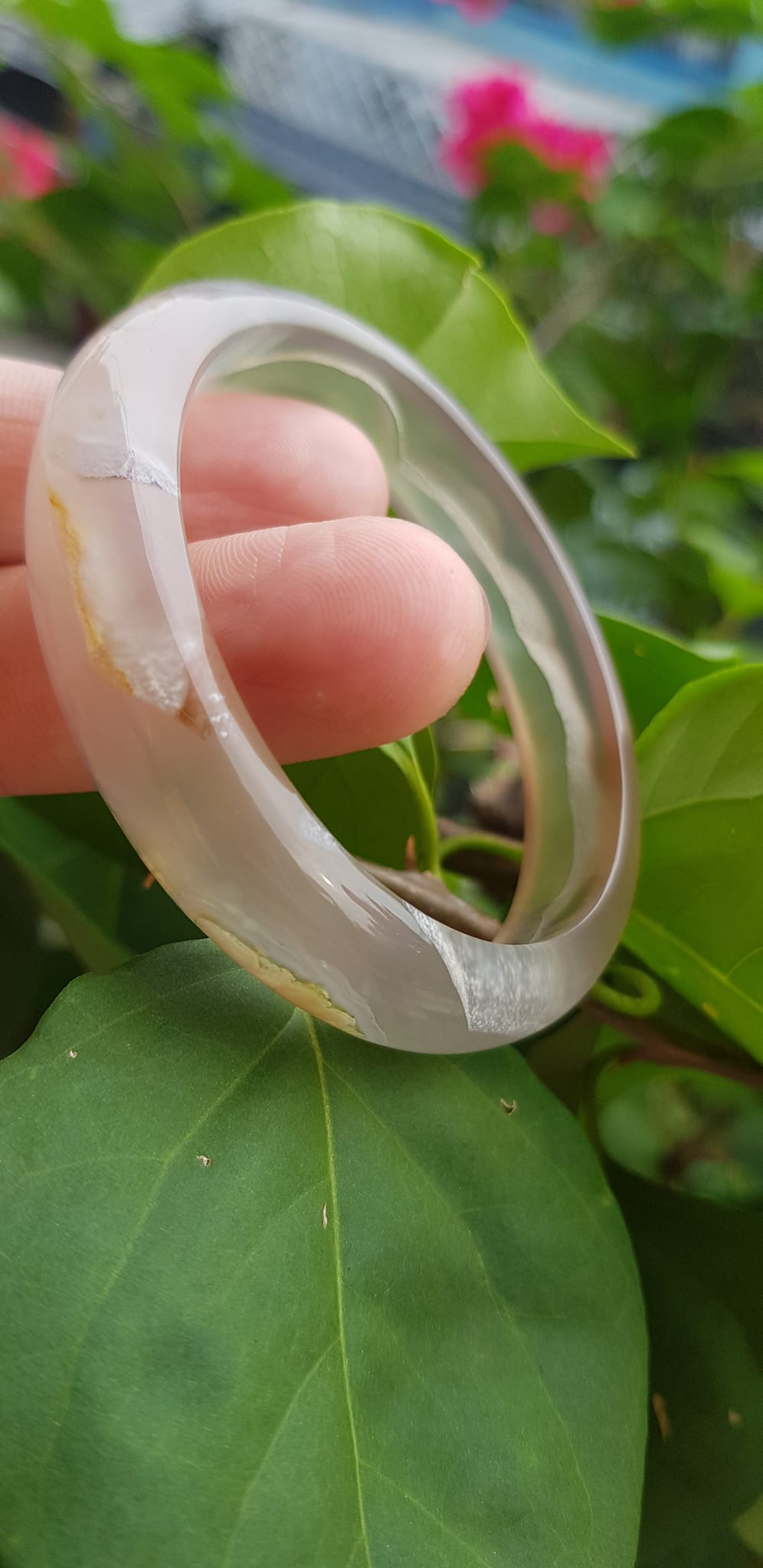 Vòng tay phong thuỷ Nữ Bản Hẹ Đá Mã Não Trắng trong vân hoa đẹp Vòng màu trắng trong Ni 50mm x Cao 12mm x dầy 6,5mm Hợp nữ mệnh kim mệnh Thủy ạ Sản