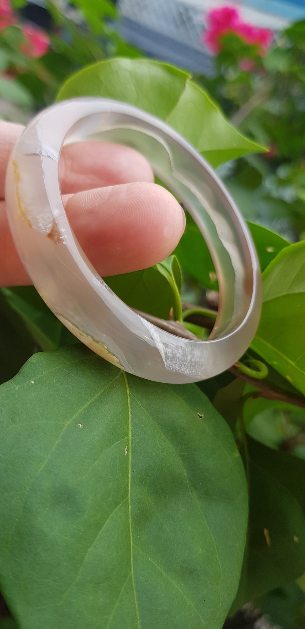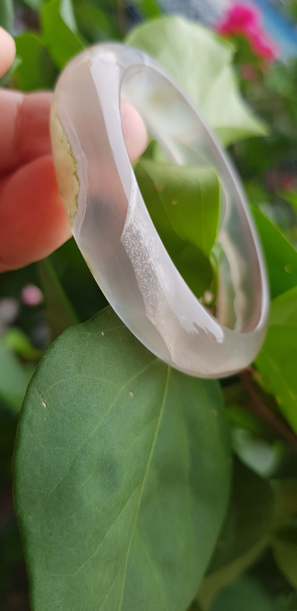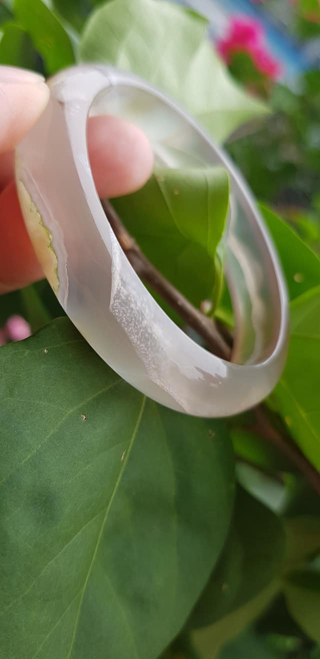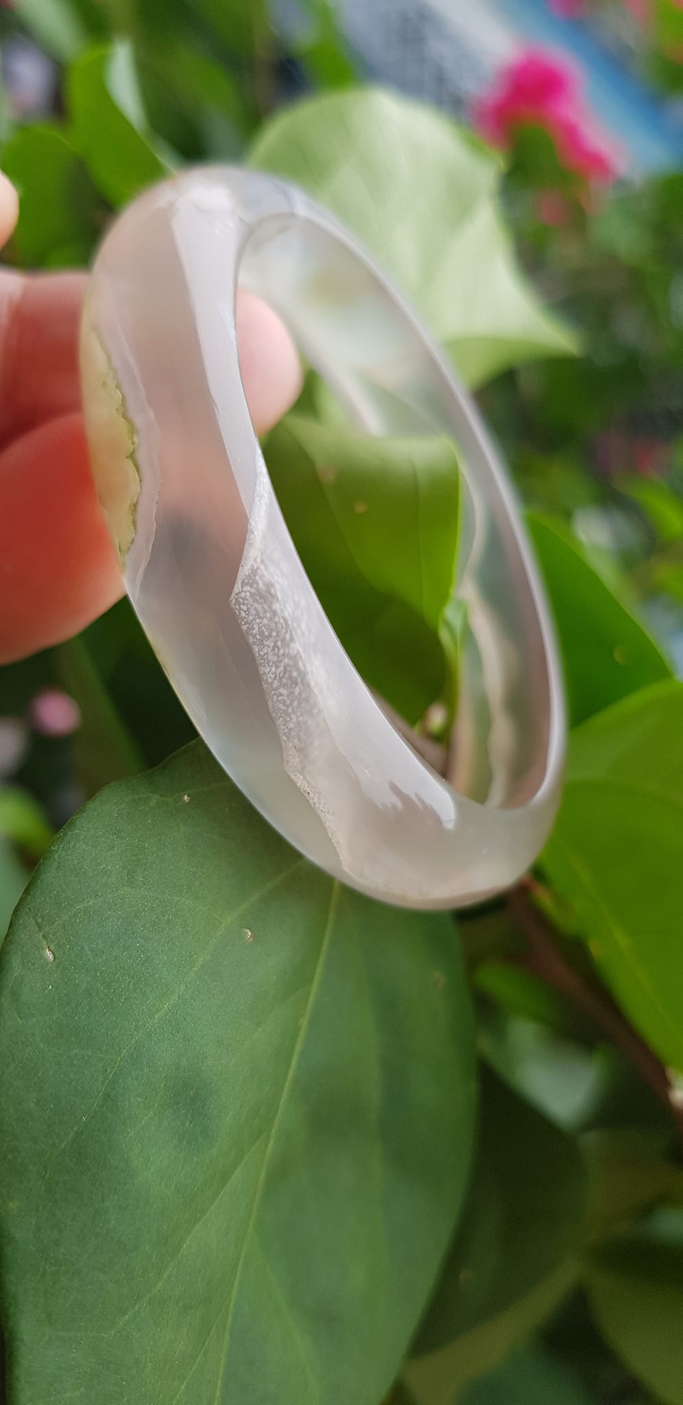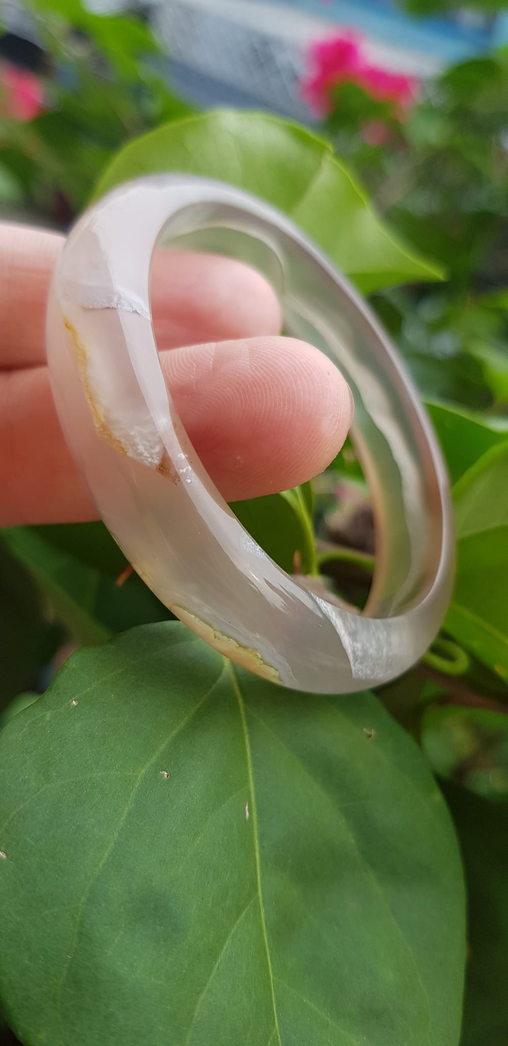 Vòng tay phong thuỷ Nữ Bản Hẹ Đá Mã Não Trắng trong vân hoa đẹp Vòng màu trắng trong Ni 50mm x Cao 12mm x dầy 6,5mm Hợp nữ mệnh kim mệnh Thủy ạ Sản