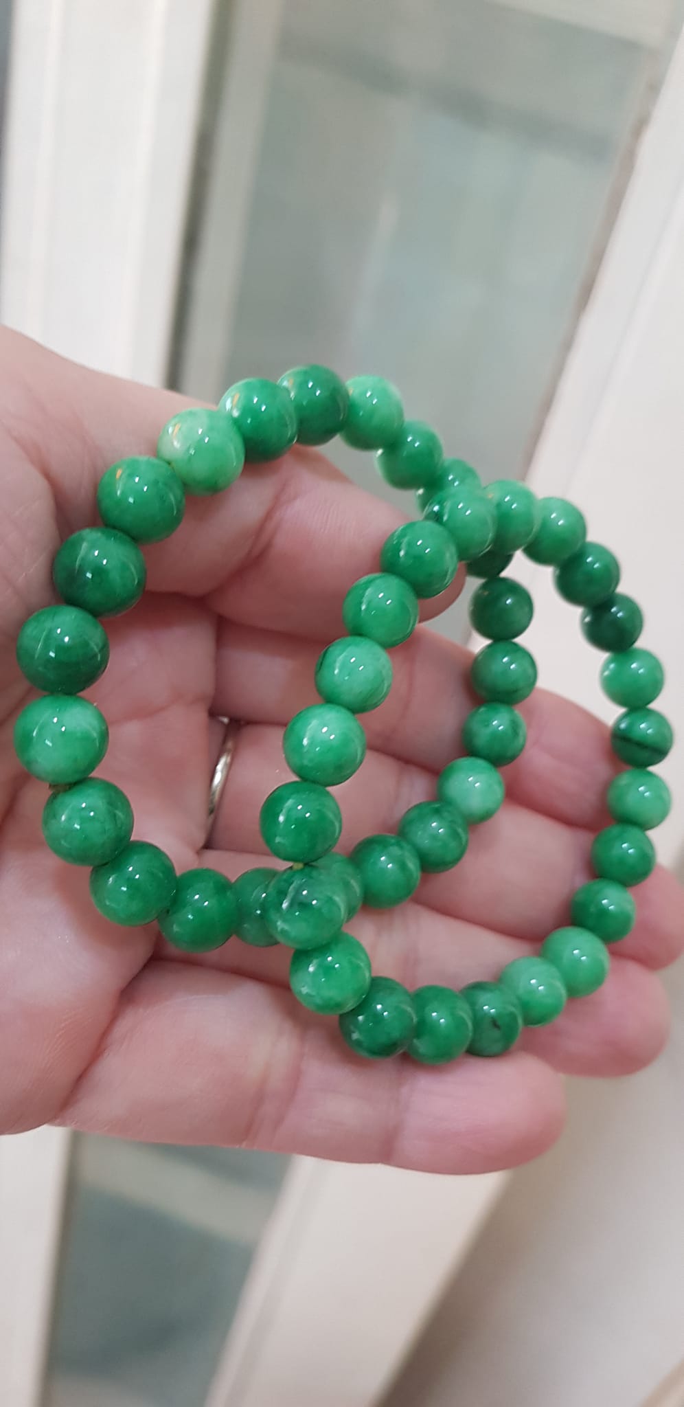 Vòng tay phong thủy đá cẩm thạch xanh tươi size hạt 8mm hay 8li màu xanh ngọc tươi trẻ đẹp