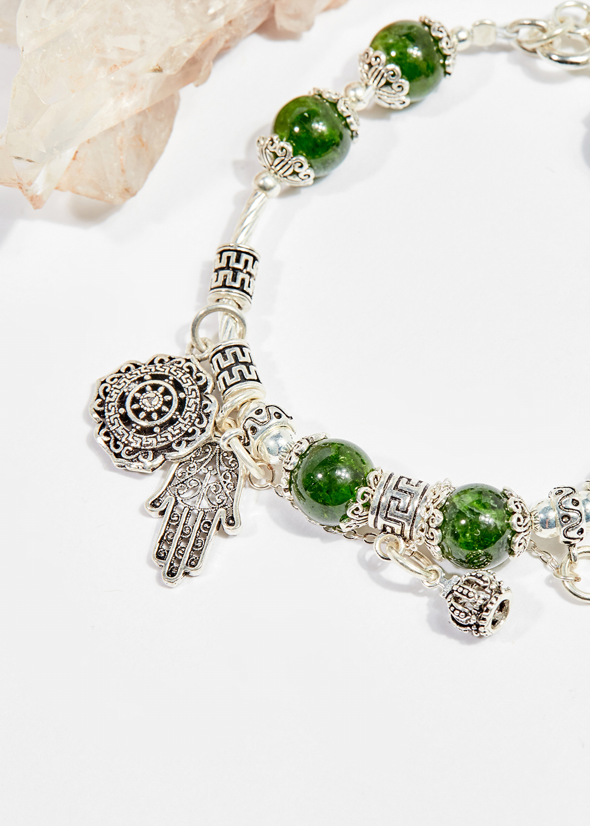 - Vòng Đá Thạch Anh Ưu Linh Trắng Phối Charm Bạc (8mm) Ngọc Quý Gemstones được mệnh danh là anh cả và là một biến thể cực kì độc đáo trong dòng đá thạch anh.