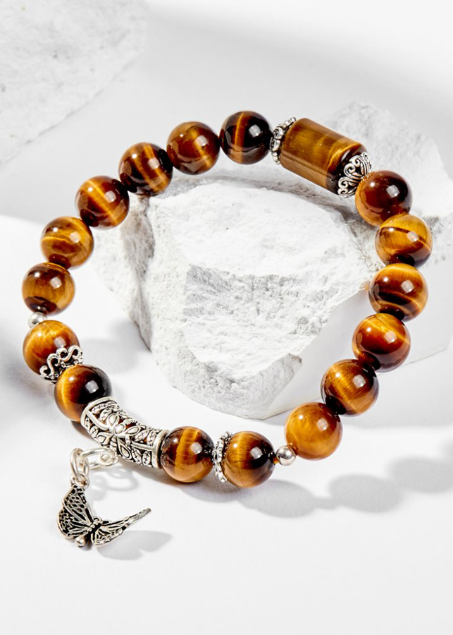 Từ lâu người ta đã biết đá mắt hổ vàng nâu như một viên đá vô cùng tuyệt với tần số rung động cao giúp thu hút những điều tốt đẹp và may mắn trong cuộc sống. Giúp loại bỏ lo âu, căng thẳng, giúp tinh thần luôn tỉnh táo, lạc quan. Vòng Tay Phong Thủy Nữ Đá Mắt Hổ Vàng Nâu Phối Charm Bướm Bạc (8mm) Mệnh Thổ, Kim được làm từ đá mắt hổ vàng nâu.