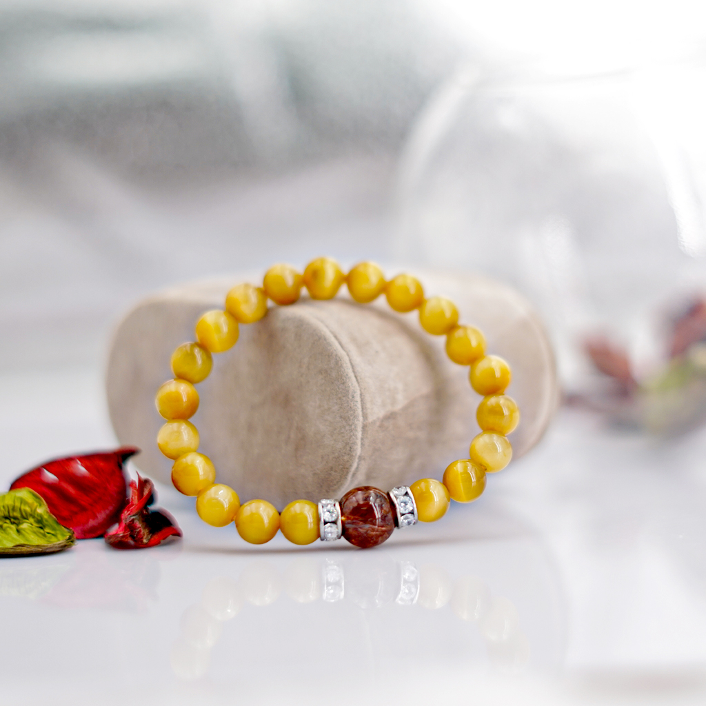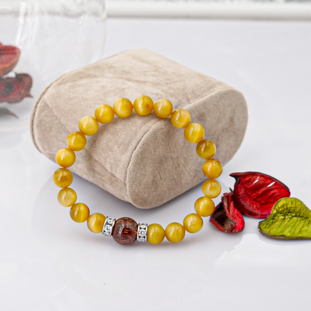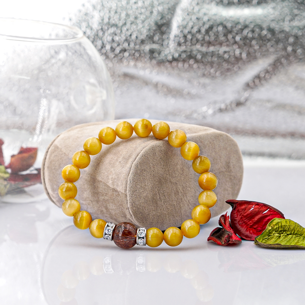 ✨Vòng tay phongg thủy Mắt hổ vàng tâm 8mm + Thạch Anh Tóc nâu do Anqlo tác chế