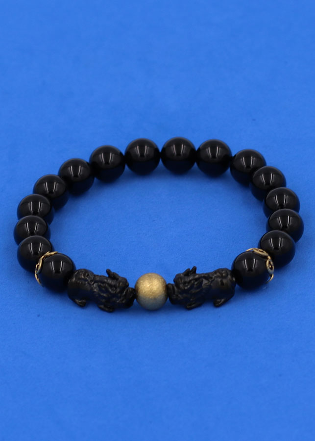 Vòng Tay Nam Đá Obsidian Phối Tỳ Hưu Bạc Mạ Vàng 24K Ngọc Quý Gemstones - Đá thủy tinh núi lửa (Obsidian) là một dạng khoáng vật vô định hình, chúng được hình thành do