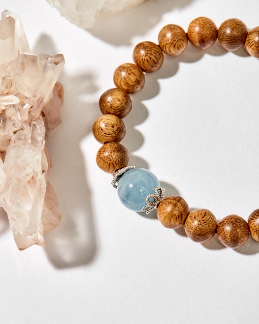 Vòng tay đá hải lam ngọc mix charm bạc - Hợp Mệnh Thủy & Mộc [ Ngọc Quý ]