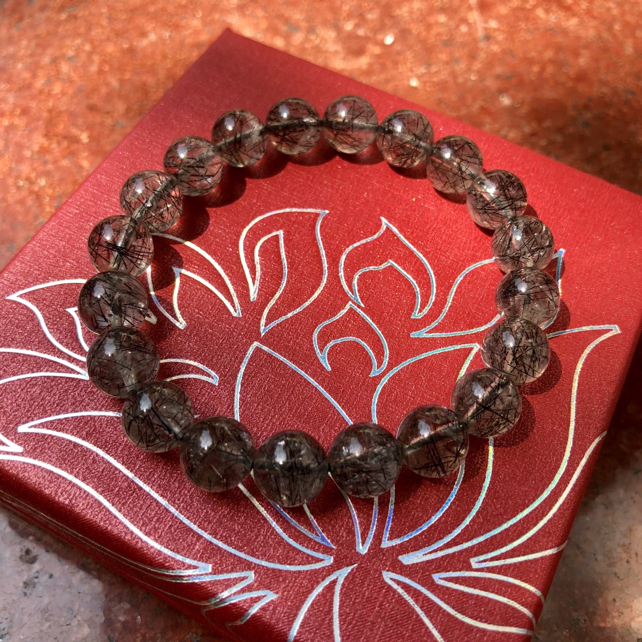 Vòng Đá thạch anh tóc đen trong giúp cơ thể chủ nhân lưu thông khí huyết và hỗ trợ điều trị những bệnh về máu, về cột sống và xương khớp.
