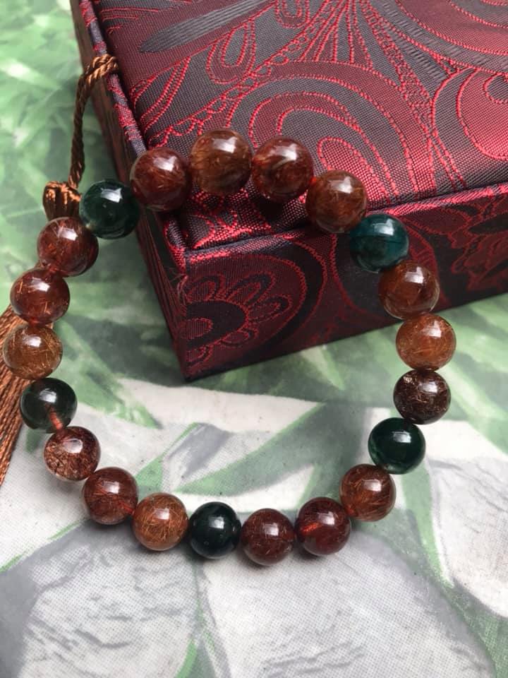Vòng tay đá thạch anh tóc đỏ trong bóng tự nhiên Size vòng hạt 9mm Nữ mệnh hỏa mệnh thổ Sunny Q8