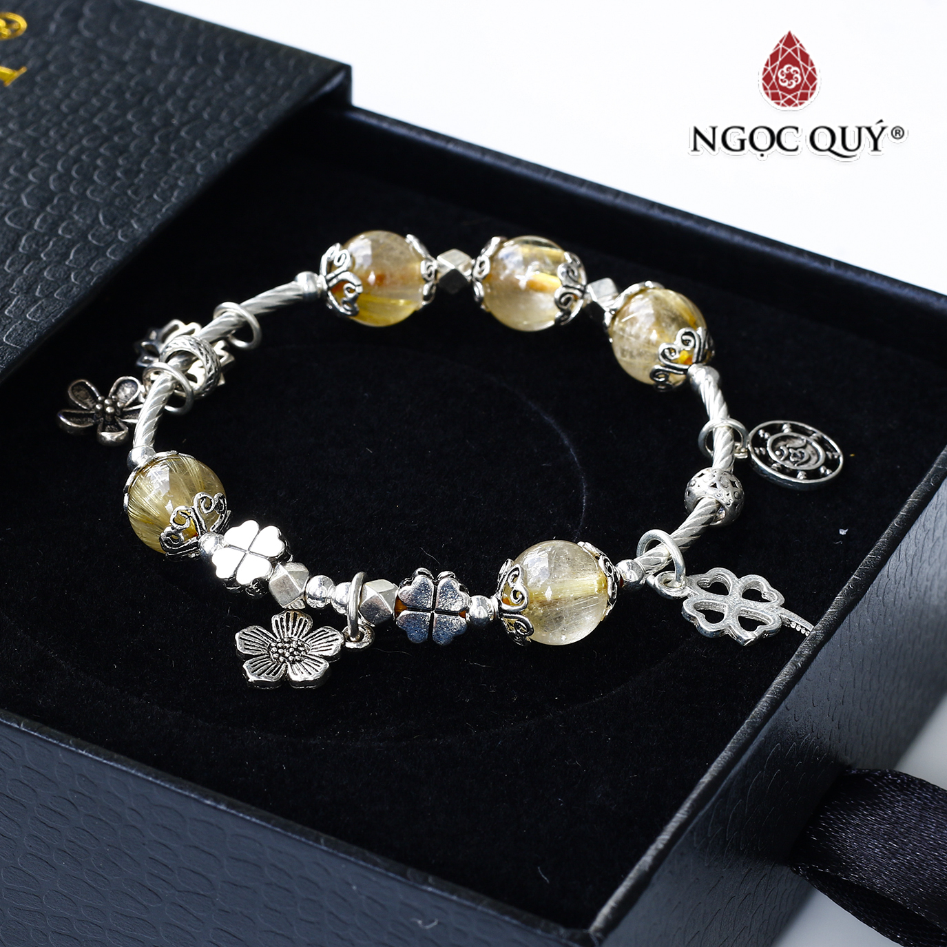 Thạch anh ưu linh cảnh tự nhiên cao cấp Phụ kiện charm bạc 925 Thái Kích thước: 10mm Số lượng: 9 viên theo cung sinh Độ cứng thạch anh tóc vàng: 7/10 (thang độ