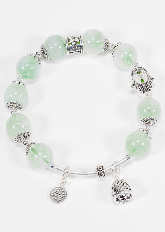 Vòng tay đá thạch anh tóc xanh phối charm bạc - Hợp mệnh mộc, hỏa | Ngọc Quý Gemstones |