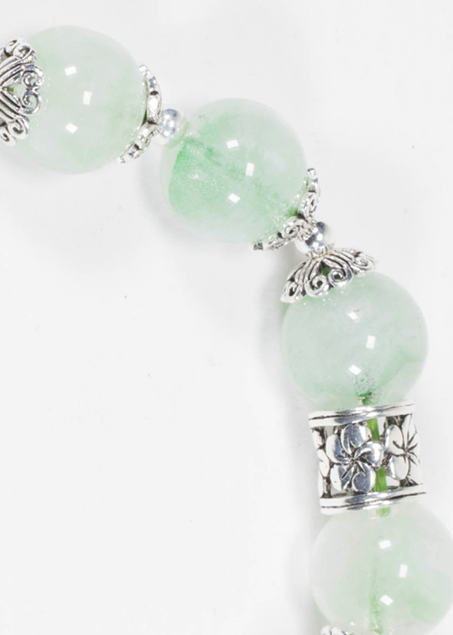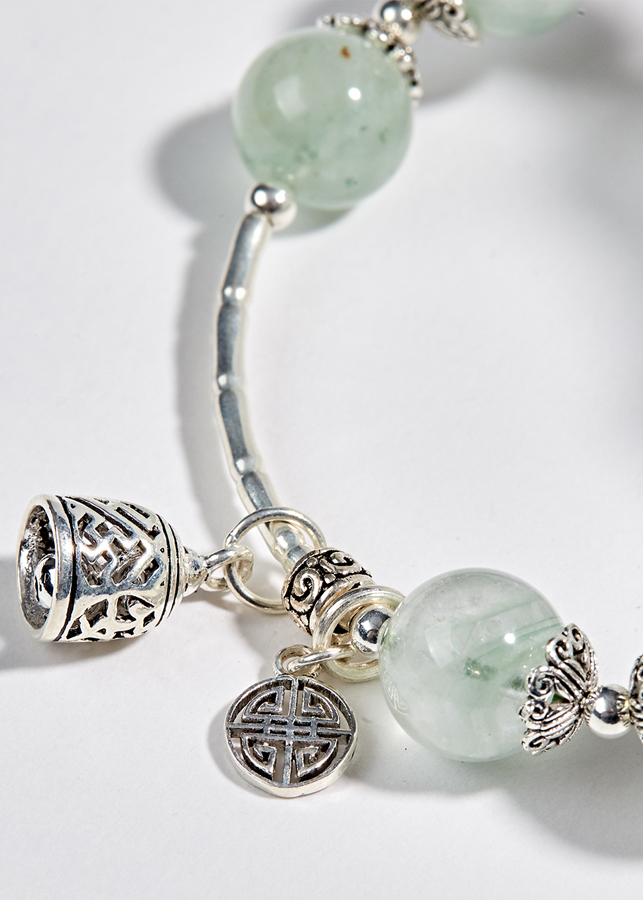 - Vòng Thạch Anh Xanh Phối Charm Chuông Bạc (8mm) giúp xoa dịu cơn giận dữ và lấy lại cảm xúc bình tĩnh. Màu xanh lá cây mang đến một cảm giác cân bằng và