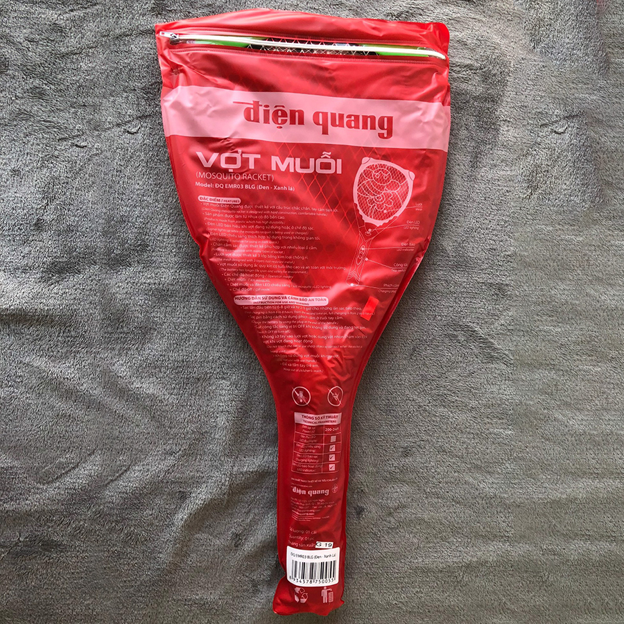 - Đặc biệt, vợt muỗi Điện Quang có đèn LED chiếu sáng và đèn báo có điện thông minh. Cùng với công tắc mở điện linh hoạt trên thân vợt giúp người dùng thao tác dễ dàng khi bật hoặc tắt.