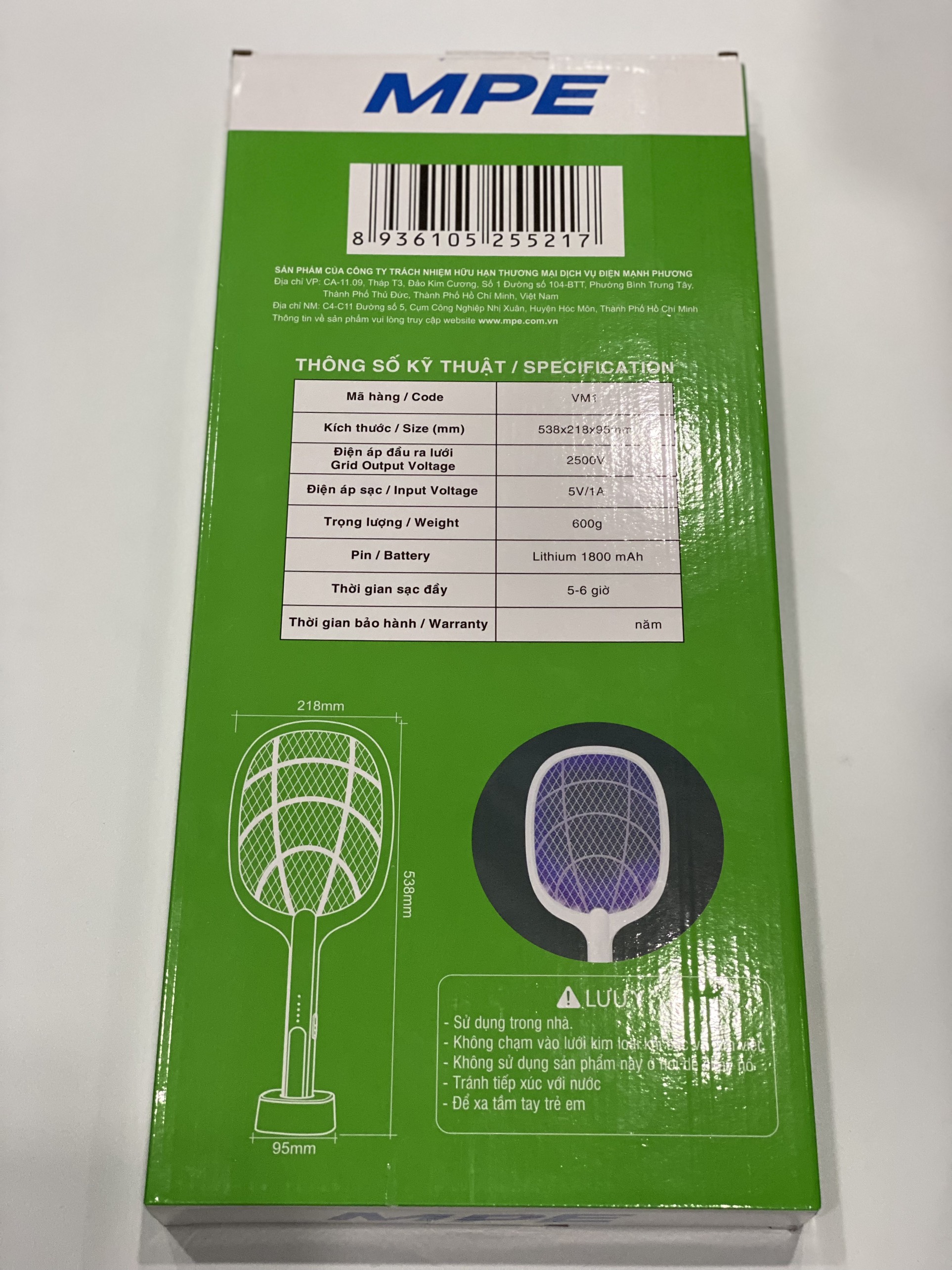 ✨Vợt muỗi MPE VM1 thông minh 2 in 1 tích hợp chức năng tự động bắt muỗi, cổng sạc USB, có đèn led báo - Hàng chính hãng