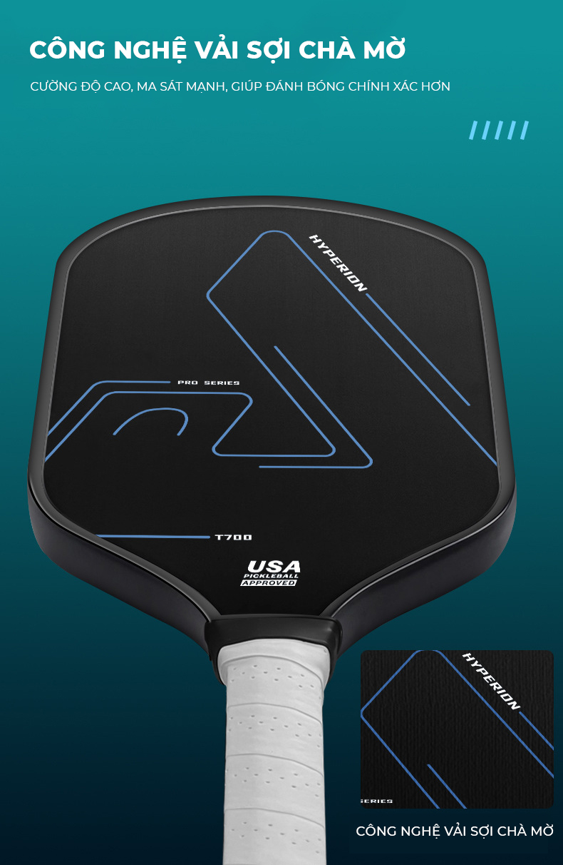 Vợt Pickleball T700 Pro được sản xuất theo tiêu chuẩn USSA Mặt vợt carbon T700 Pro 16mm