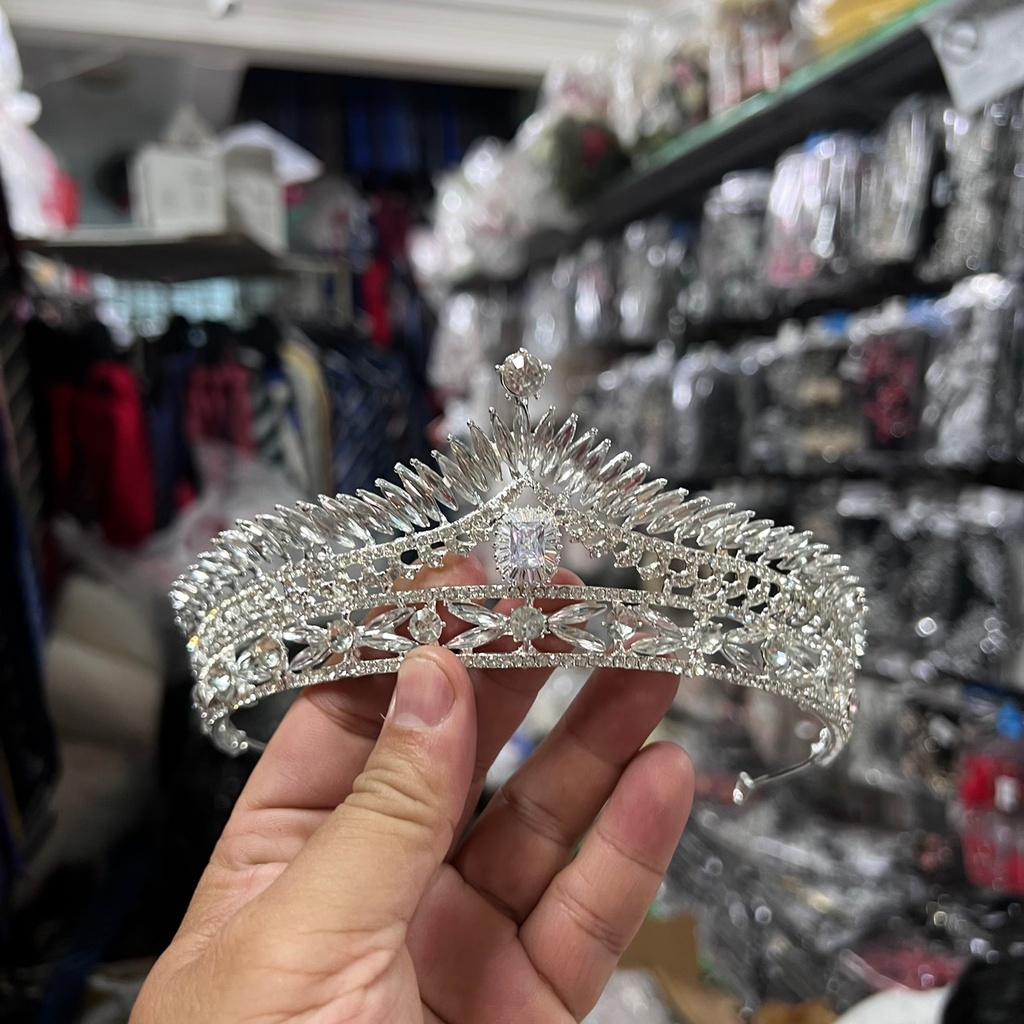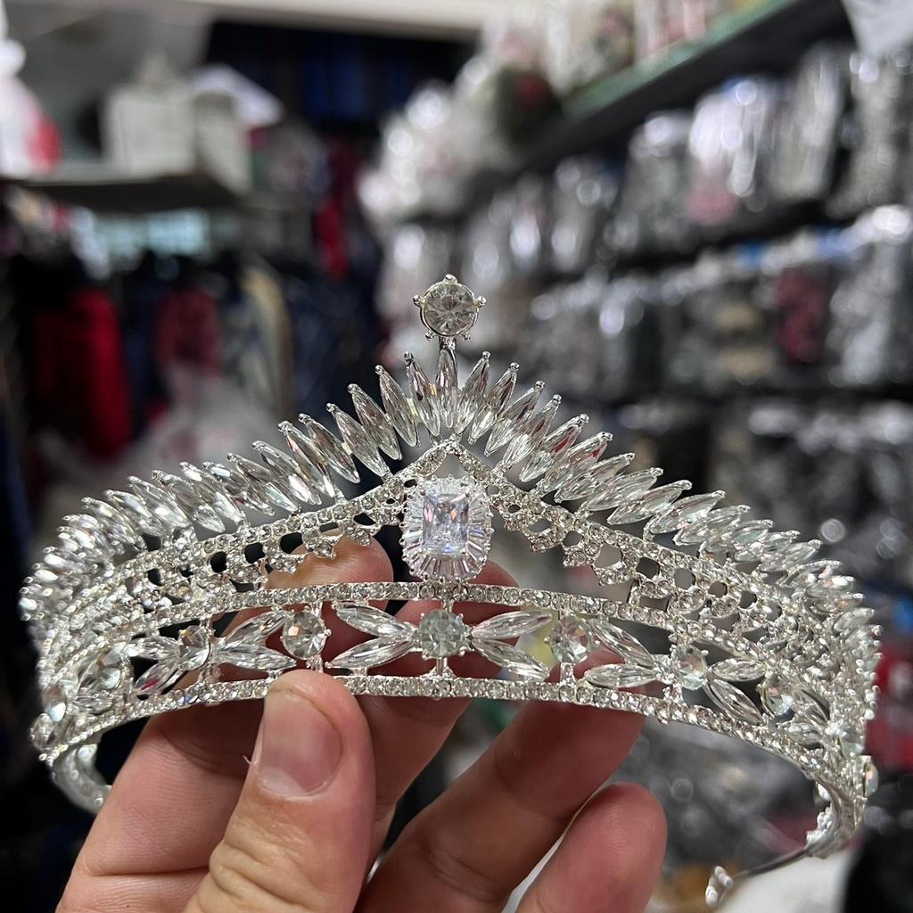 Vương miện cô dâu trắng bạc đá zincin lấp lánh