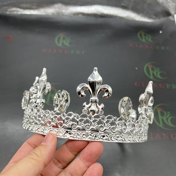 ✨Vương miện nam vướng chóp nhọn đá tròn màu trắng cao 6cm