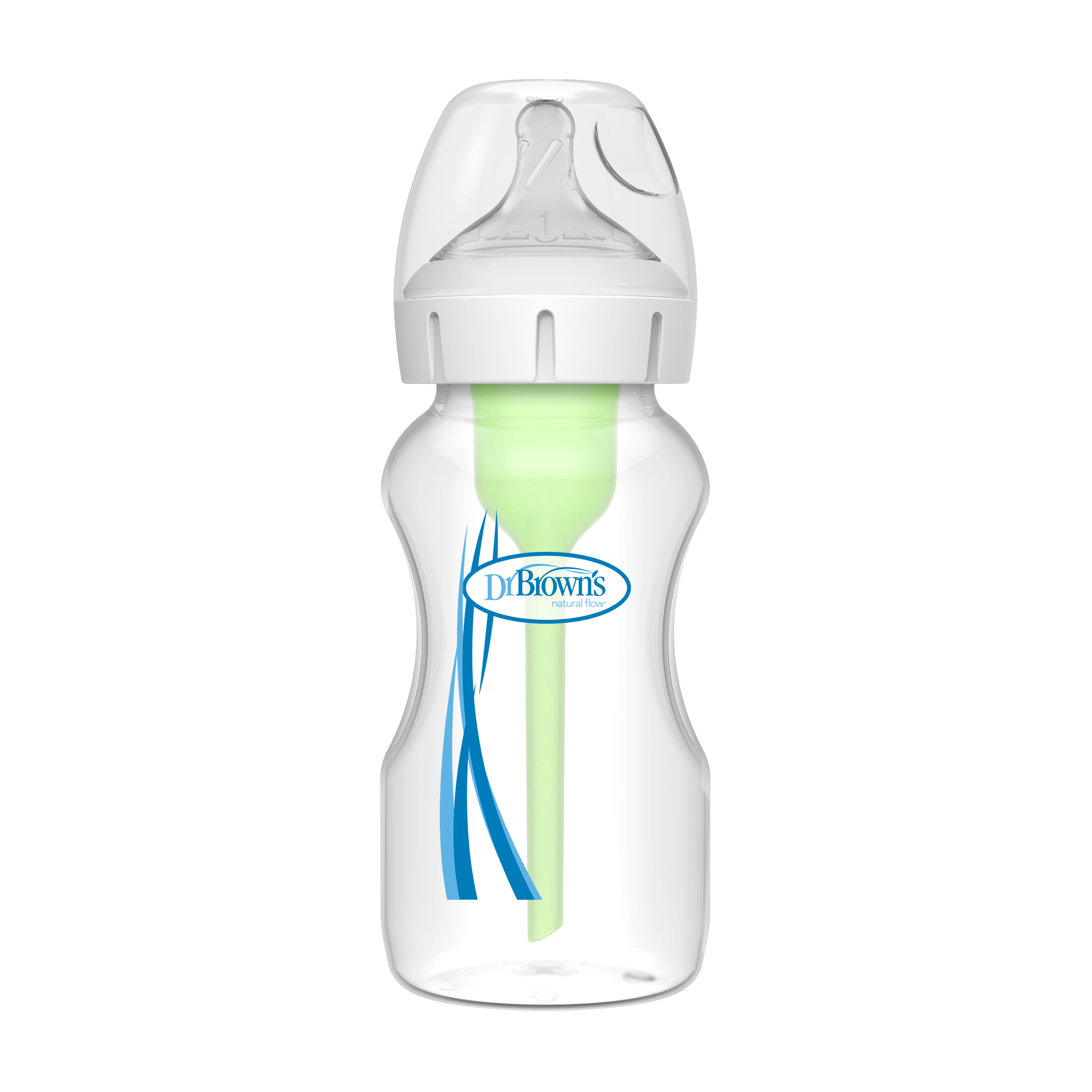 • Bình sữa Dr.Brown’s có hệ thống van khí thông minh tạo nên dòng chảy tự nhiên "Nature flow". Theo đó, không khí sẽ đi từ cổ bình sữa qua ống van, chạy xuống đáy bình mà không đi qua sữa, tạo ra dòng áp lực dương đẩy sữa qua núm ty