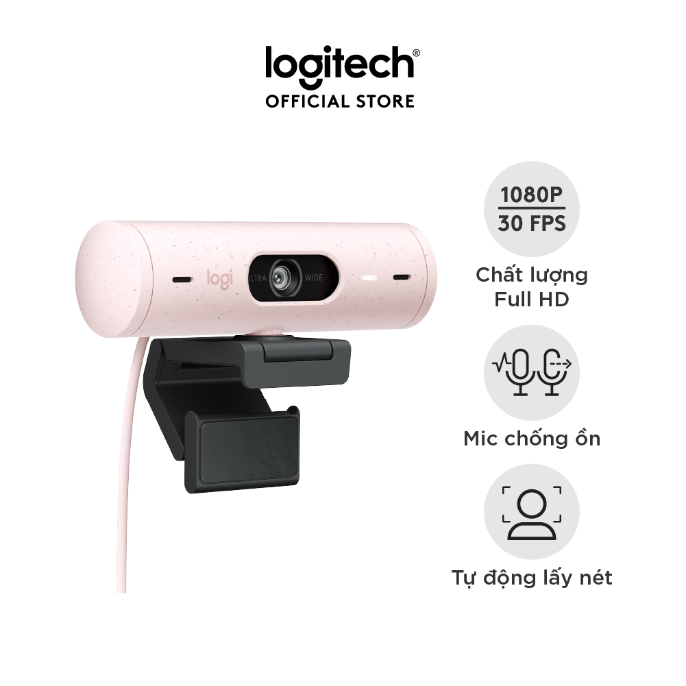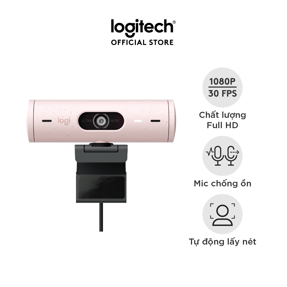 ✨Webcam Logitech Full HD Brio 500 - Tự động điều chỉnh ánh sáng, Tự động lấy khung hình,Show mode, Mic kép giảm ồn, nắp che bảo mật, Hoạt động với Microsoft Teams, Google Meet, Zoom - Hàng chính hãng