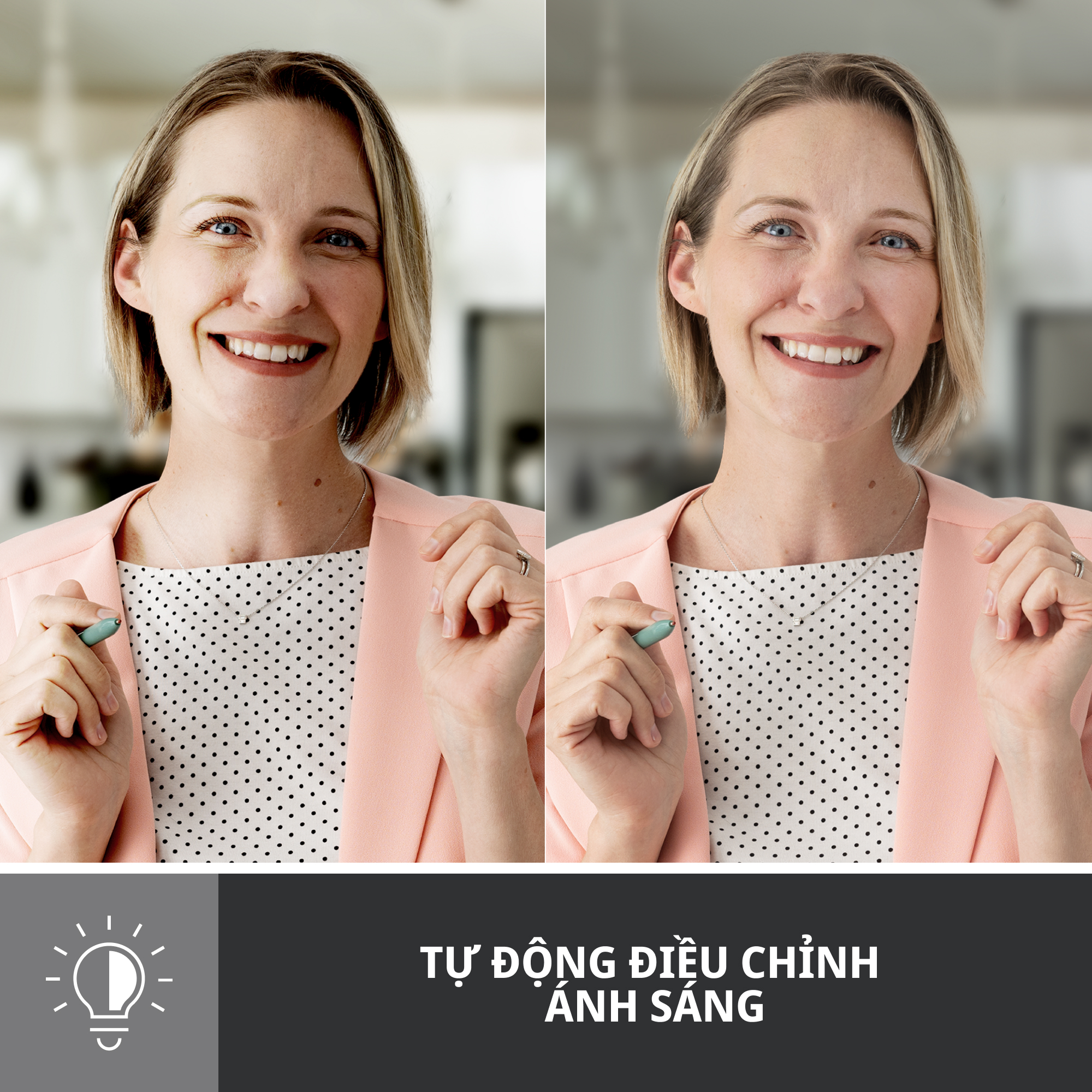 • Điều chỉnh ánh sáng tự động (RightLight 4): Công nghệ chiếu sáng video RightLight 4 tự động điều chỉnh theo ánh sáng trong môi trường của bạn, vì vậy bạn có thể được nhìn thấy rõ ràng ngay cả trong ánh sáng yếu