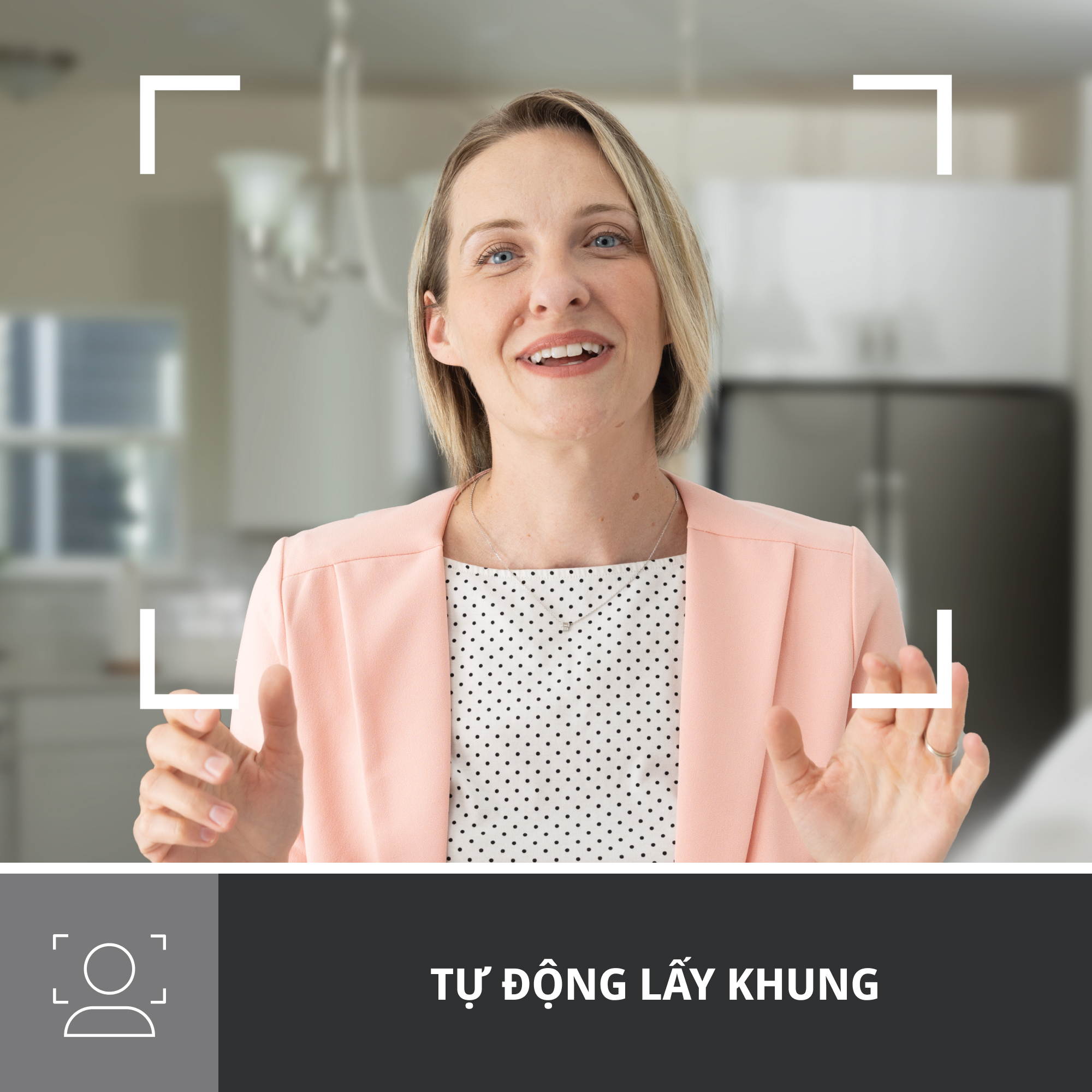 • Tự động lấy khung (RightSight): Chức năng tự động lấy khung (1)(3) đặt máy quay video vào vị trí của bạn, cho phép bạn đứng và di chuyển trong các cuộc họp mà không ra khỏi khung hình