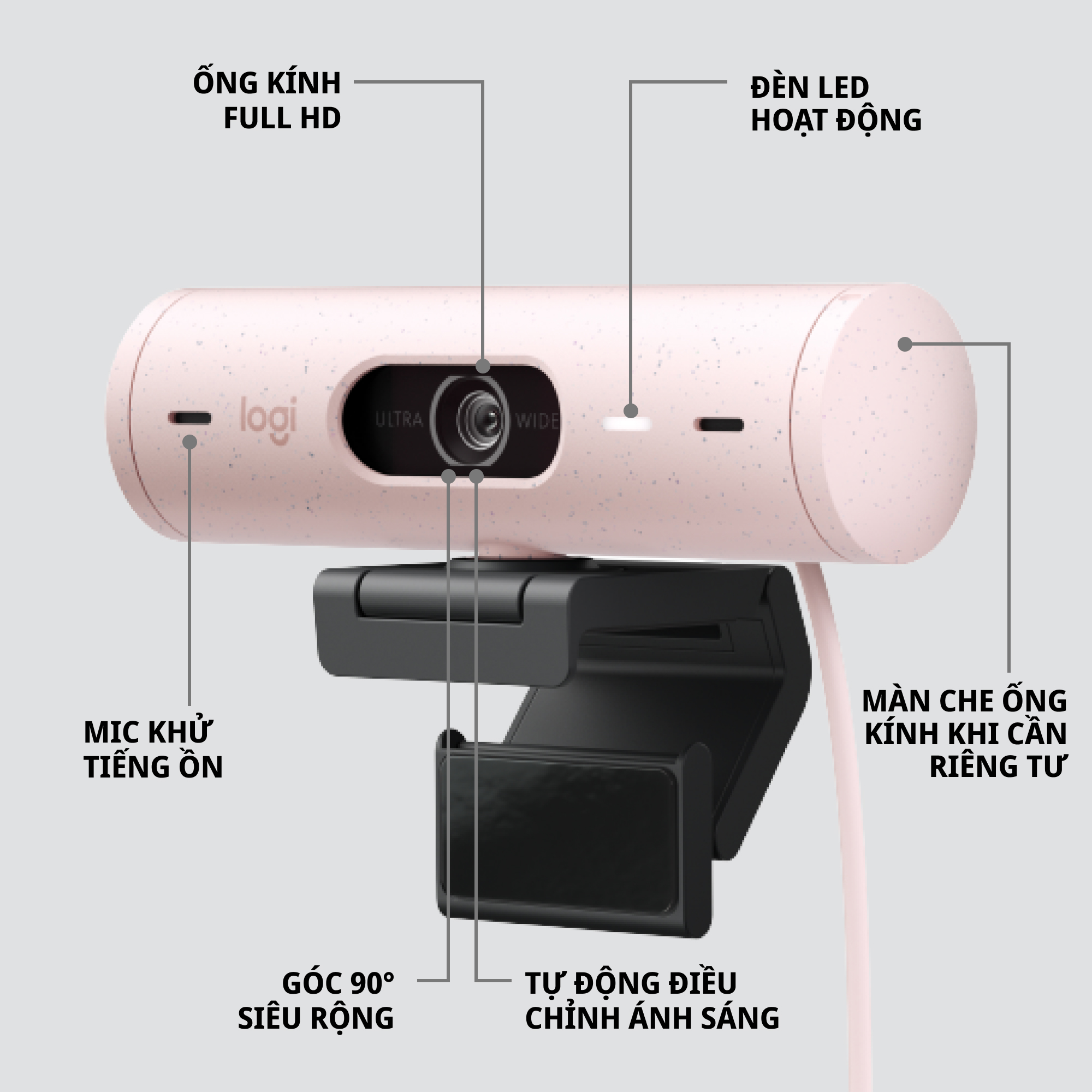 • Webcam có Nắp che bảo mật: Để bảo vệ sự riêng tư của bạn giữa các cuộc họp, chỉ cần xoay màn trập bảo vệ tích hợp của webcam để chặn hoàn toàn máy ảnh THÔNG SỐ KỸ THUẬT: Nhiều độ phân giải 1080p/30fps (1920x1080pixel) 720p/60fps (1280x720 pixel) Camera megapixel: 4MP Loại tiêu cự: Lấy nét tự động Loại micrô tích hợp Micrô âm thanh nổi Phạm vi của mic: Lên tới 4 ft (1,22 m) Trường ngắm chéo (dFoV): 90°/78°/65° Thu phóng phần cứng: Thu phóng kỹ thuật số 4x Kẹp gắn phổ dụng phù hợp với máy tính xách tay, màn hiển thị LCD hoặc các màn hình   TRONG HỘP BAO GỒM: