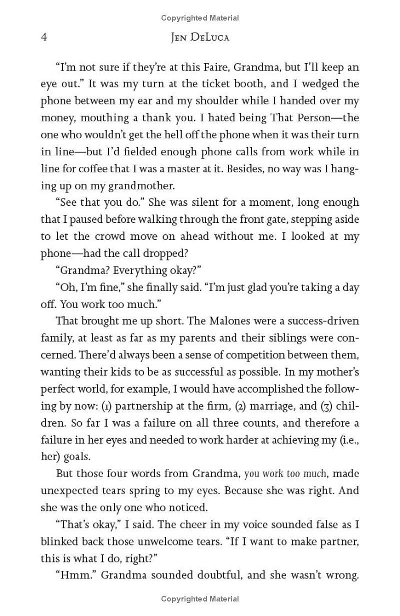 Attorney Lulu Malone lived to work until the day it all went wrong. So, when her cousin Mitch introduces her to the world of Renaissance Faires, she leaps for the turkey legs, taverns, and tarot readers. Sometimes girls just wanna have fun.
