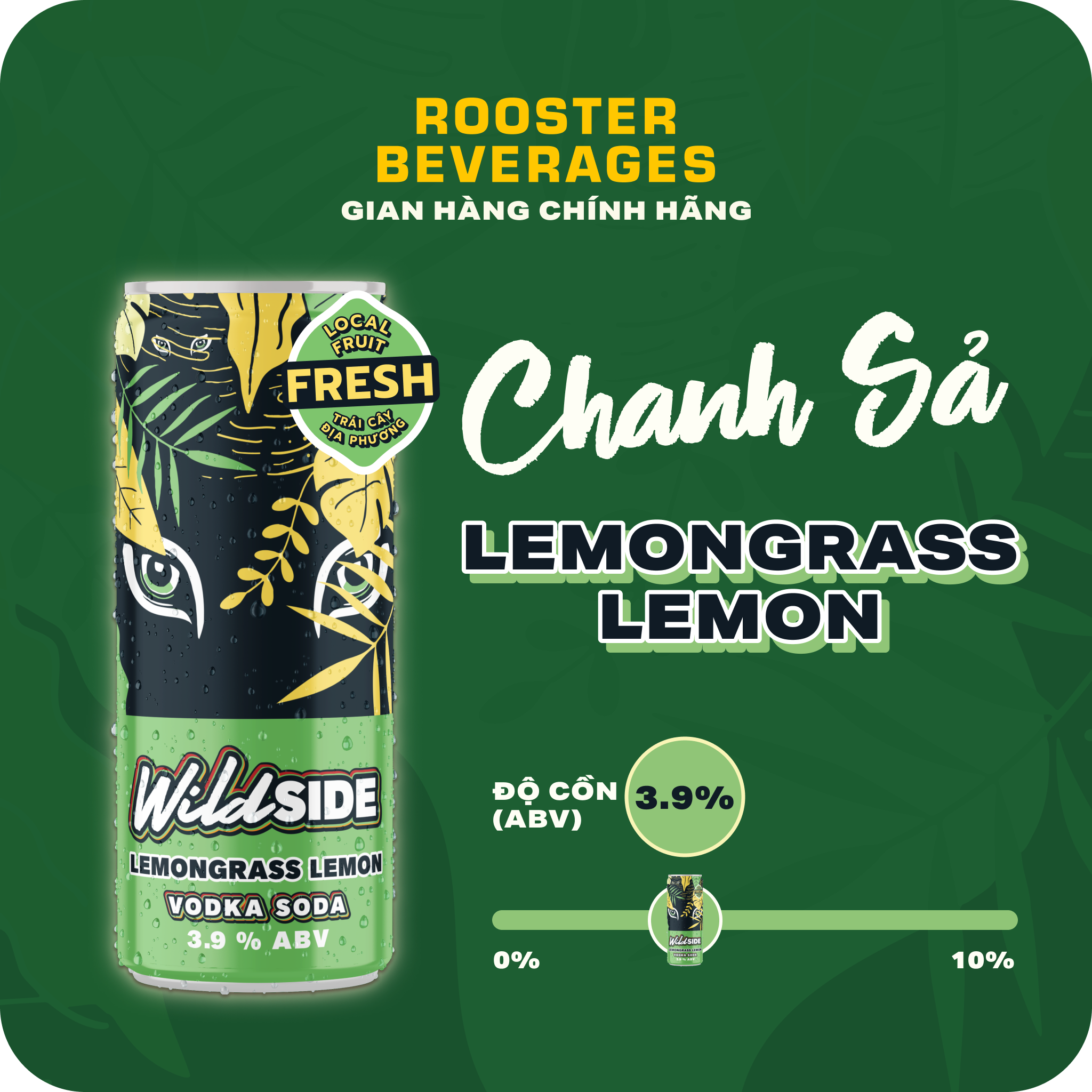 WILDSIDE VODKA SODA CHANH SẢ (LEMONGRASS LEMON) - ĐỘ CỒN 3.9% Nước chanh tươi được pha cùng chiết xuất xả non thanh mát, thêm đường mía ngọt dịu cùng chút cồn lên men từ mật
