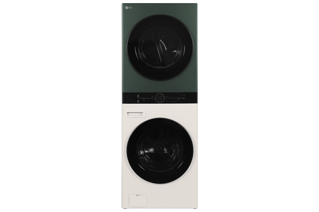 - Tháp giặt sấy LG Inverter giặt 25 kg - sấy 17 kg WT2517NHEG có kiểu dáng lồng giặt ngang với máy giặt nằm ở phía dưới và máy sấy nằm ở phía trên, nhờ đó tối ưu không gian lắp đặt cho gia đình bạn. Ngoài ra, vỏ máy còn được làm bằng kim loại sơn tĩnh điện bền bỉ, sở hữu màu xanh và màu be bắt mắt, tạo nên điểm nhấn cho không gian sống nhà bạn.