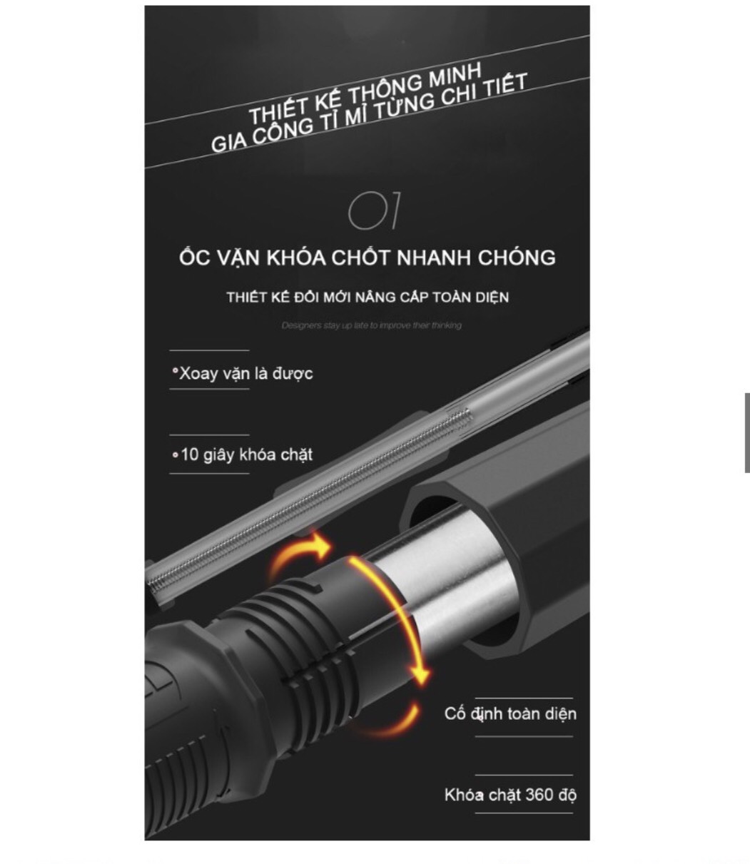- Khóa chống xoay thiết kế dạng 360 độ giúp an toàn tuyệt đối.