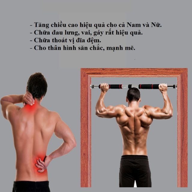 Mô Tả Sản Phẩm: Xà đơn gắn cửa cải tiến có chốt chống xoay (60cm-100cm)(82cm-130cm)(116cm-150cm) (Khách lựa chọn kích thước) Xà đơn có chốt chống xoay: Chiều dài : 62-100cm 82-130cm và 100-150cm Mẫu 62-100cm