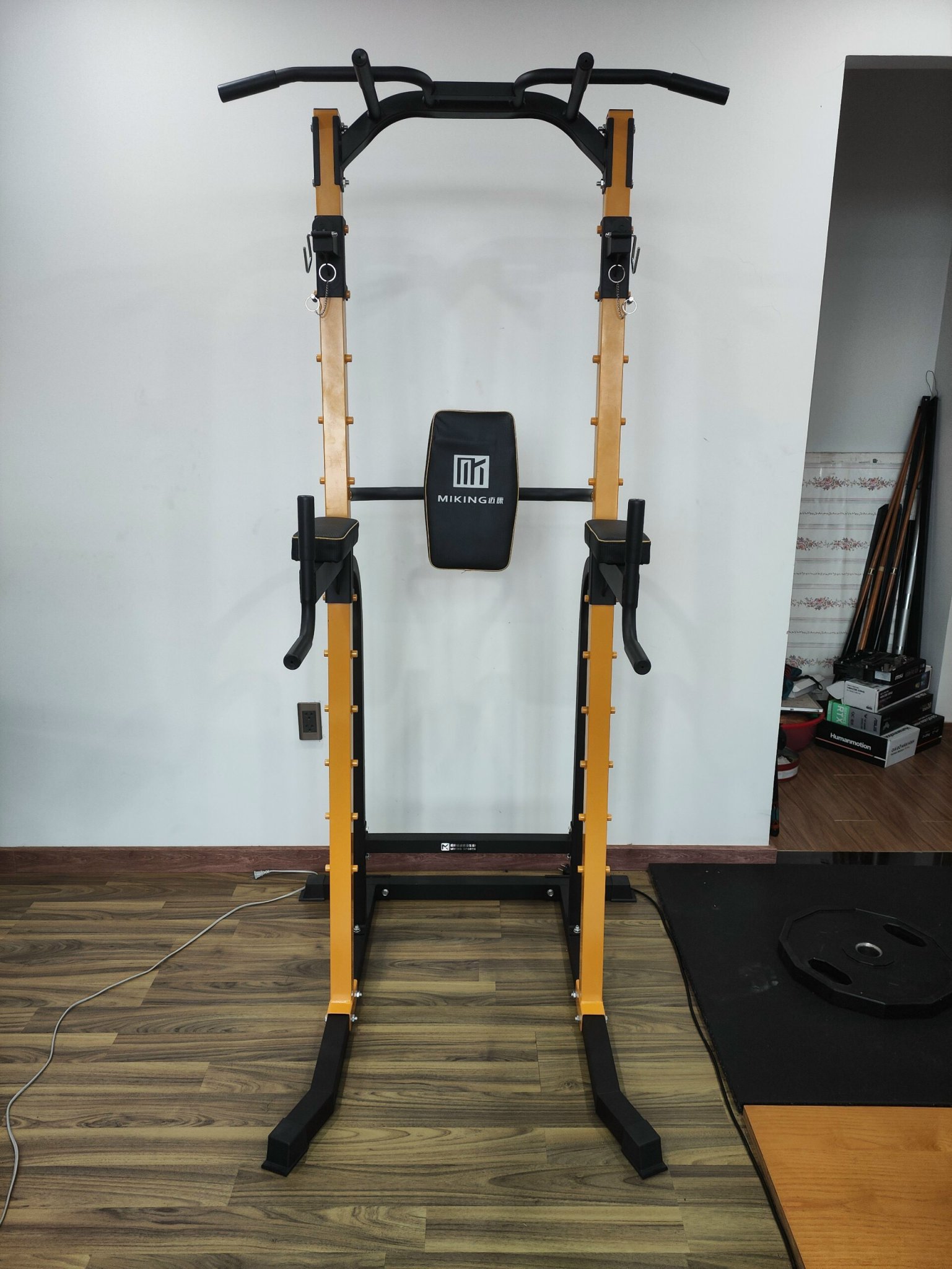 - So với các mẫu xà đơn xà kép đa năng trước kia, MK 680 được tích hợp thêm bộ phận giá đỡ đòn tạ ở hai bên. Với bộ phận này, bạn có thể sử dụng nó để đỡ tạ đòn trong các bài tập cơ bản như , nằm đẩy tạ đòn hay tập Deadlift,