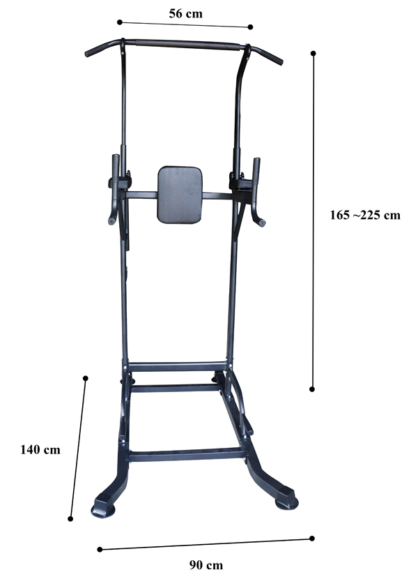 - Kích thước lắp đặt xà đơn xà kép T056: 140 x 90 cm, chiều cao điều chỉnh từ 165 – 225 cm