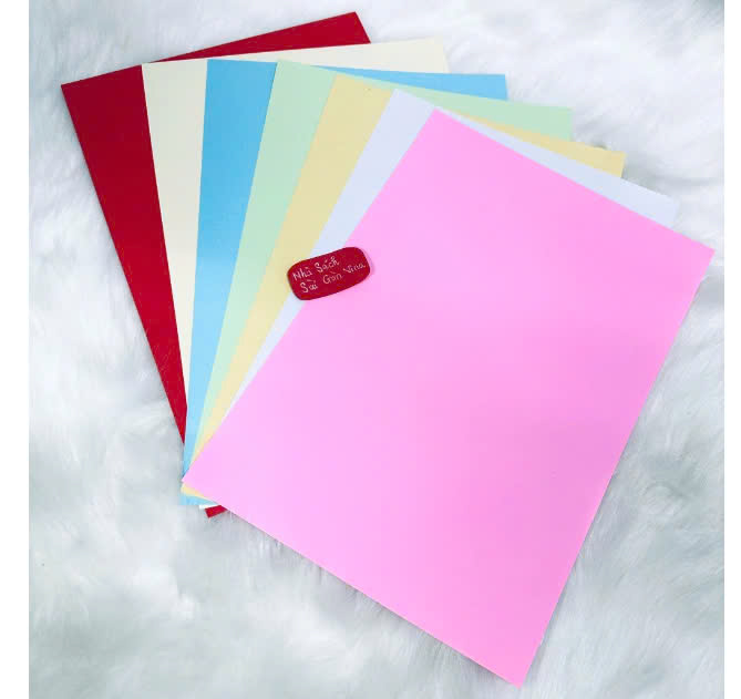 - Đặc điểm: Là loại giấy in phổ biến và thông dụng với nhiều màu sắc, thường được dùng làm trang trí các trường mầm non, làm sổ tay, đóng bìa,