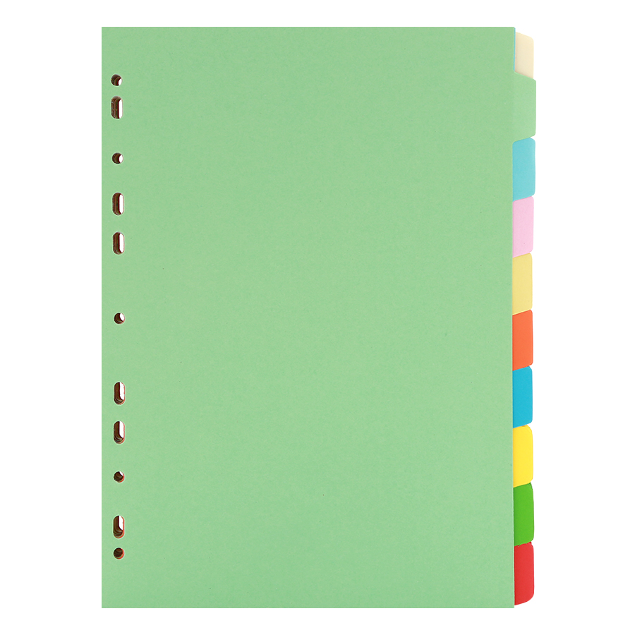 - Xấp 5 Bộ Giấy Phân Trang Grand 10 Số được sản xuất từ chất liệu PP độ bền cao. - Tiện dụng cho nhân viên văn phòng và học sinh, sinh viên để bảo