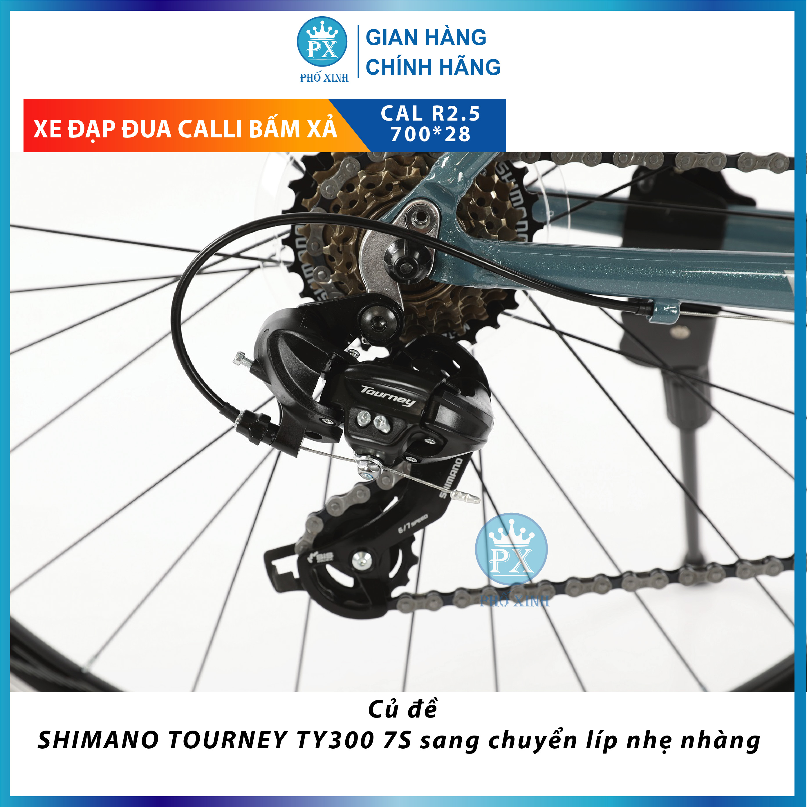 Không cầu kỳ, phức tạp, xe đạp đua Calli R2.5 được thiết kế chỉ với một mục đích duy nhất: dành chiến thắng trong mọi cuộc đua đường trường. Với trọng lượng siêu nhẹ cùng thiết kế khí động lực học và bộ truyền động S H I M A N O TOURNEY 14 tốc độ, chiếc xe hứa hẹn là tay đua đáng gờm với bất cứ đối thủ nào.