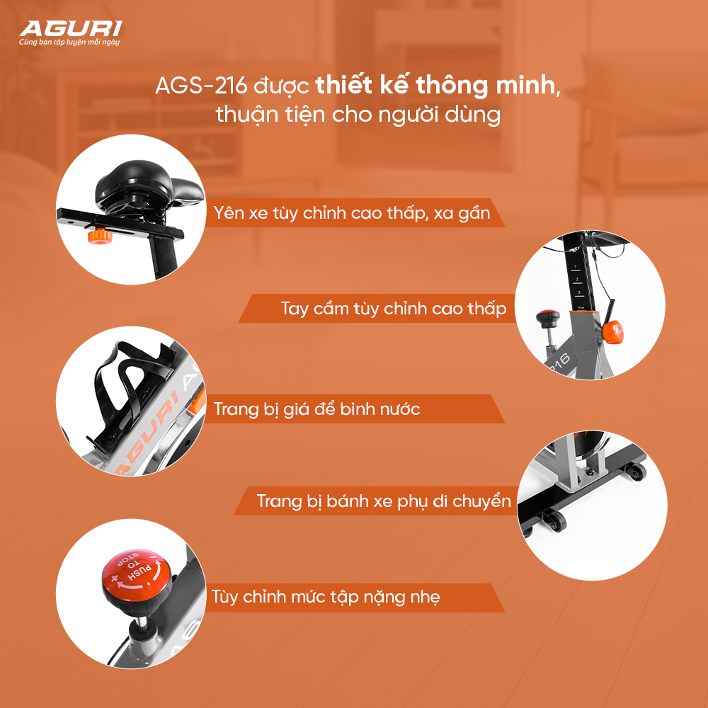Với những đặc điểm nổi bật này, xe đạp tập leo núi AGURI AGS-216 của AGURI là sự lựa chọn hoàn hảo để rèn luyện sức khỏe, đạt được mục tiêu tập luyện và tạo nên một phong cách sống thể thao cho cả gia đình.