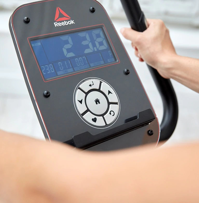 - Xe đạp reebok A4.0 được trang bị màn hình LCD 5,5 inch với các nút tinh chỉnh: đo nhịp tim, tốc độ, quãng đường đạp, mức calories tiêu hao giúp bạn dễ dàng kiểm soát quá trình tập luyện của mình.