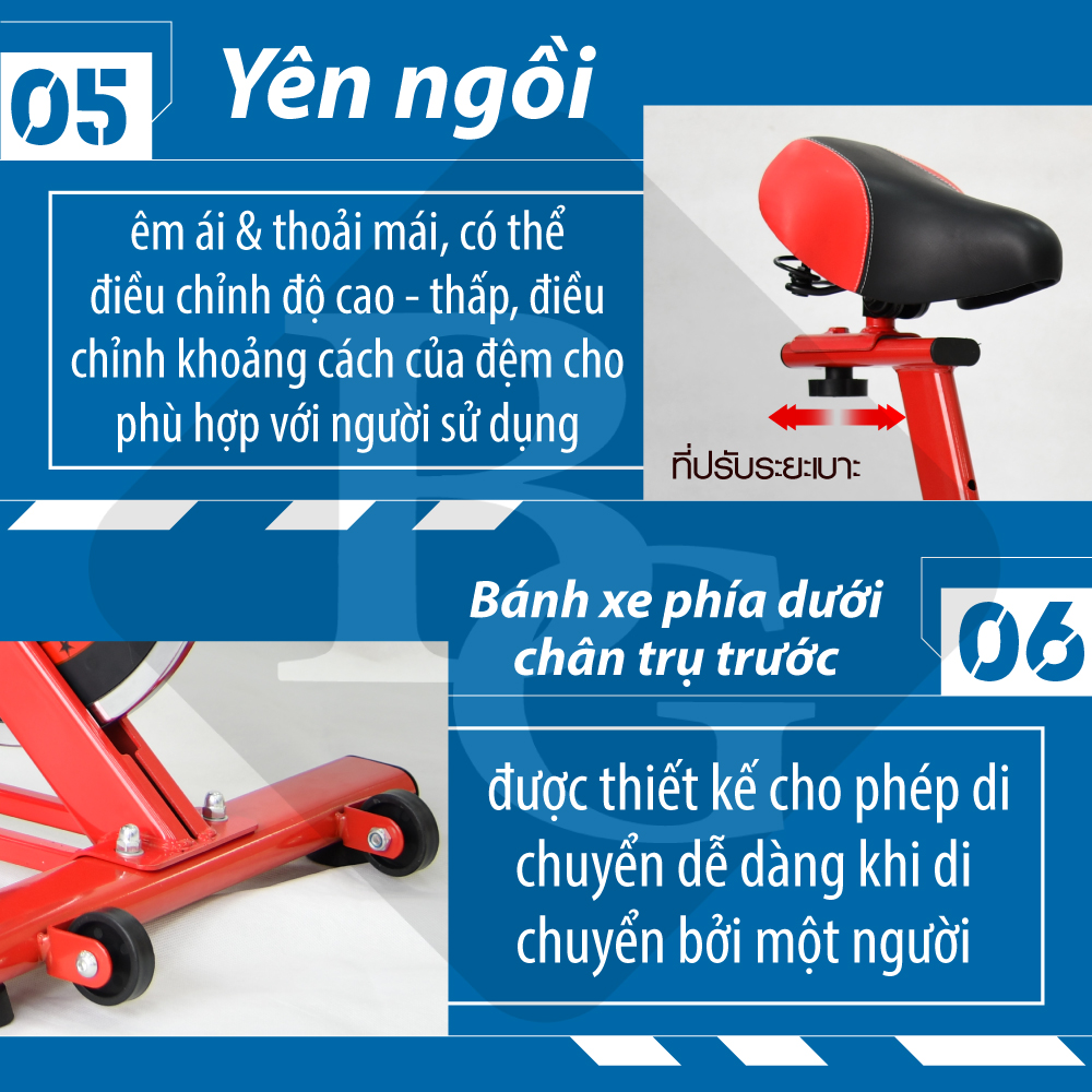 Trọng lượng tối đa người sử dụng: 125kg Cốt thanh tay cầm và yên xe bằng crom Màn hình LED hiển thị trực quan, dễ dàng quan sát Trang bị giá đựng chai nước và