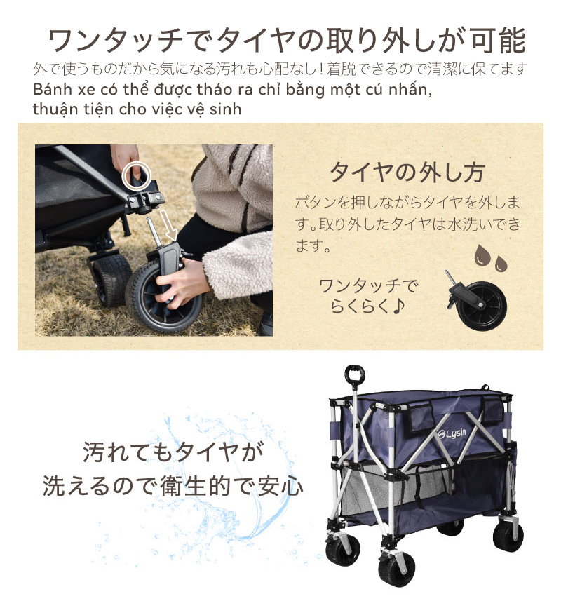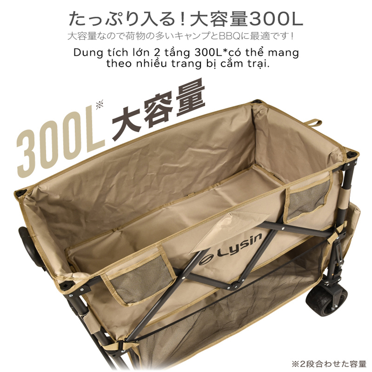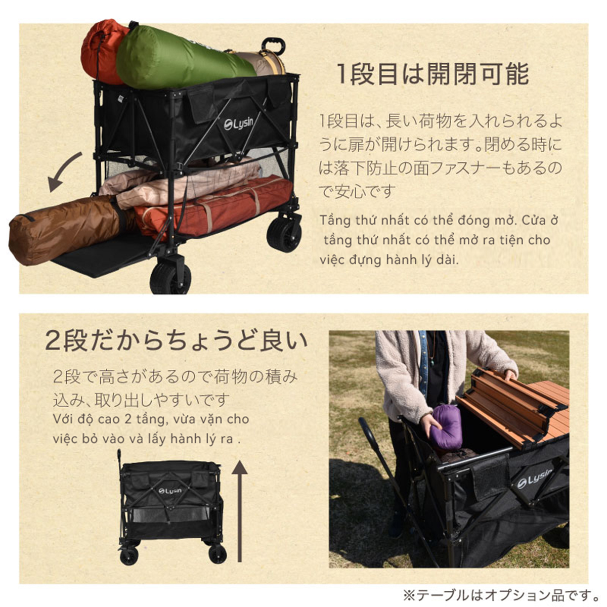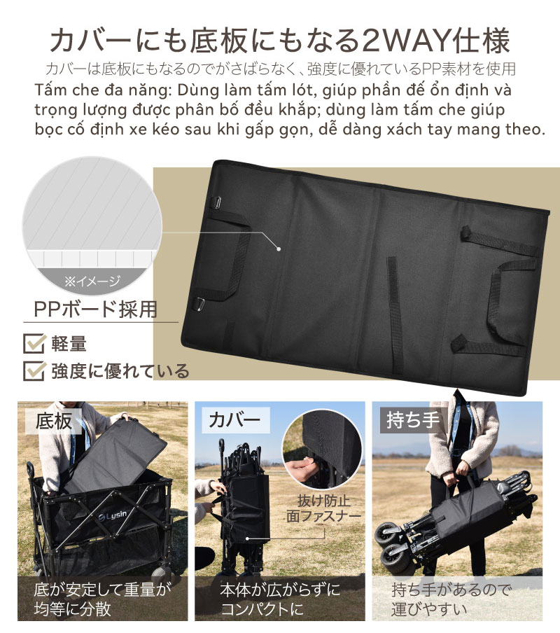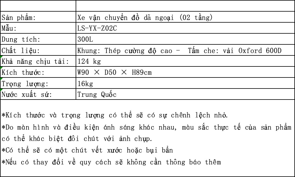 ✨Xe kéo dã ngoại 2 tầng ngoài trời du lịch cắm trại, picnic đa năng bánh xe rộng có khóa cố định dung tích 300l gấp gọn được camping