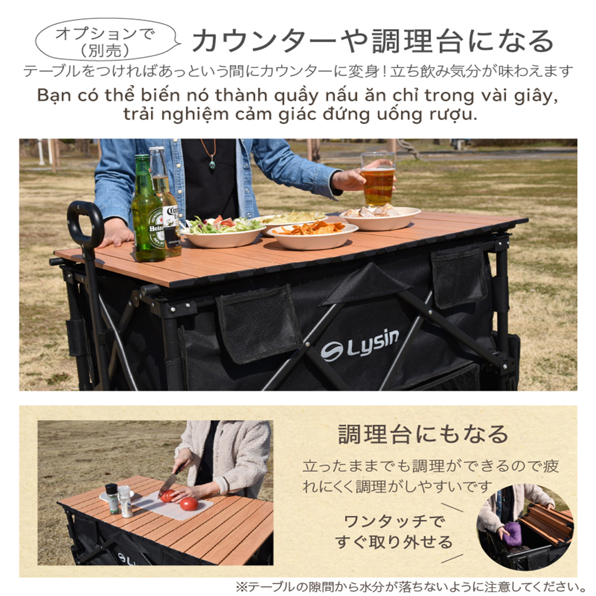 Mô tả sản phẩm - Mặt bàn cắm trại: Đây là phụ kiện chính của sản phẩm, được thiết kế để sử dụng trong các hoạt động cắm trại. ️ Chi tiết sản phẩm