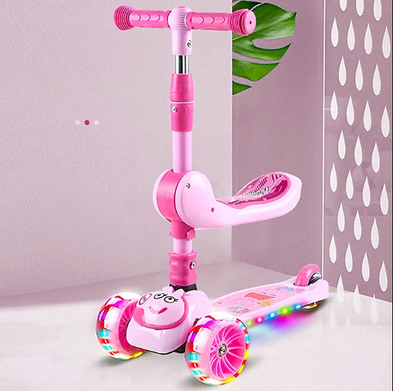 Xe scooter 3 in 1 có nhạc - đèn- chòi chân là một món quà ý nghĩ và tuyệt vời nhất mà các cha mẹ dành cho các bé. Khung xe được làm từ hợp kim chống gỉ chắc chắn, tay cầm có thể điều chỉnh theo chiều cao của từng bé. Bánh xe phát sáng và có âm thanh khi bánh lăn. Tay cầm với chất liệu nhựa mềm an toàn, đàn hồi êm ái và chống trơn trượt cao.