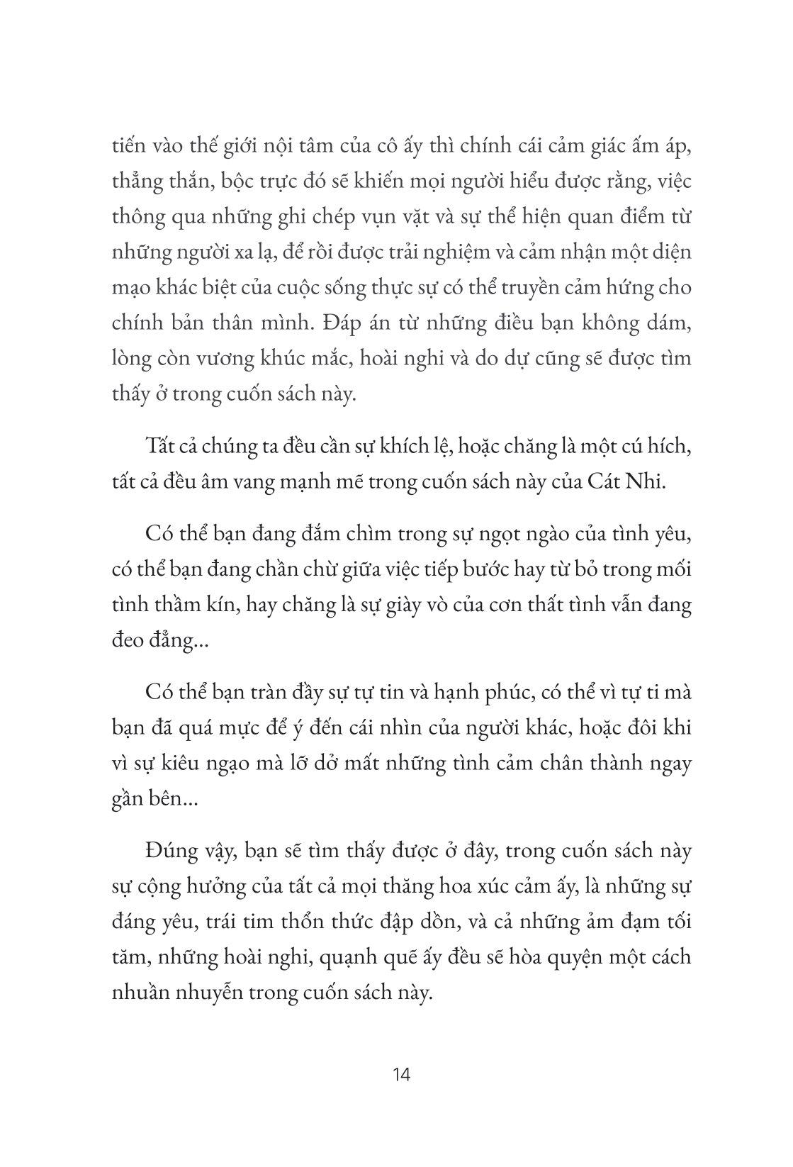 Xé Vài Trang Thanh Xuân, Đổi Lấy Một Bản Thân Nỗ Lực "Cuộc đời con người giống như một cuốn sách! Ai cũng có một vài trang muốn xé đi trong đời" Bạn có biết làm sao để cảm nhận rằng mình đang trưởng thành hay không? Đó chính là hai khoảnh khắc khi nhắm mắt và mở mắt mỗi ngày của chúng ta đấy. Với từng ngày trôi qua trong cuộc đời mà chúng ta đang sống, không chỉ cần phải cố gắng bước về phía trước, mà còn phải học được cách tìm kiếm niềm hạnh phúc cho chính mình. Tuổi trẻ này chính là nguồn vốn tốt nhất của bạn. Cho dù chỉ còn một tia hy vọng, bạn cũng phải nỗ lực để thay đổi bởi trên thế giới này, ngoại trừ chính bản thân mình ra, không một ai có thể giúp bạn. Có người cười nhạo bạn, có người gây trở ngại cho cuộc sống của bạn, nhưng tất cả đều không hề quan trọng bằng việc bạn có đủ dũng khí, đủ nỗ lực để vươn tới ngày mai rạng rỡ. Bởi vậy cô gái à, nếu bạn chân thành và nỗ lực, ắt sẽ có vì sao sáng soi rọi con đường phía trước cho mình. Những câu chuyện có thật ngoài đời thực cùng với giọng văn sắc sảo nhưng cũng không kém phần hài hước và ấm áp của Văn Cát Nhi, cuốn sách “Xé vài trang thanh xuân, đổi lấy một bản thân nỗ lực” sẽ giúp những người trẻ đang hoang mang, mơ hồ nhìn ra chân lý của cuộc sống mà vẫn tin yêu cuộc đời, đồng thời truyền cảm hứng để người trẻ trưởng thành hơn thông qua thông điệp: “Dù cuộc đời có cả ngàn lý do khiến bạn khóc thì bạn cũng phải viện ra cả vạn lý do để cười.”