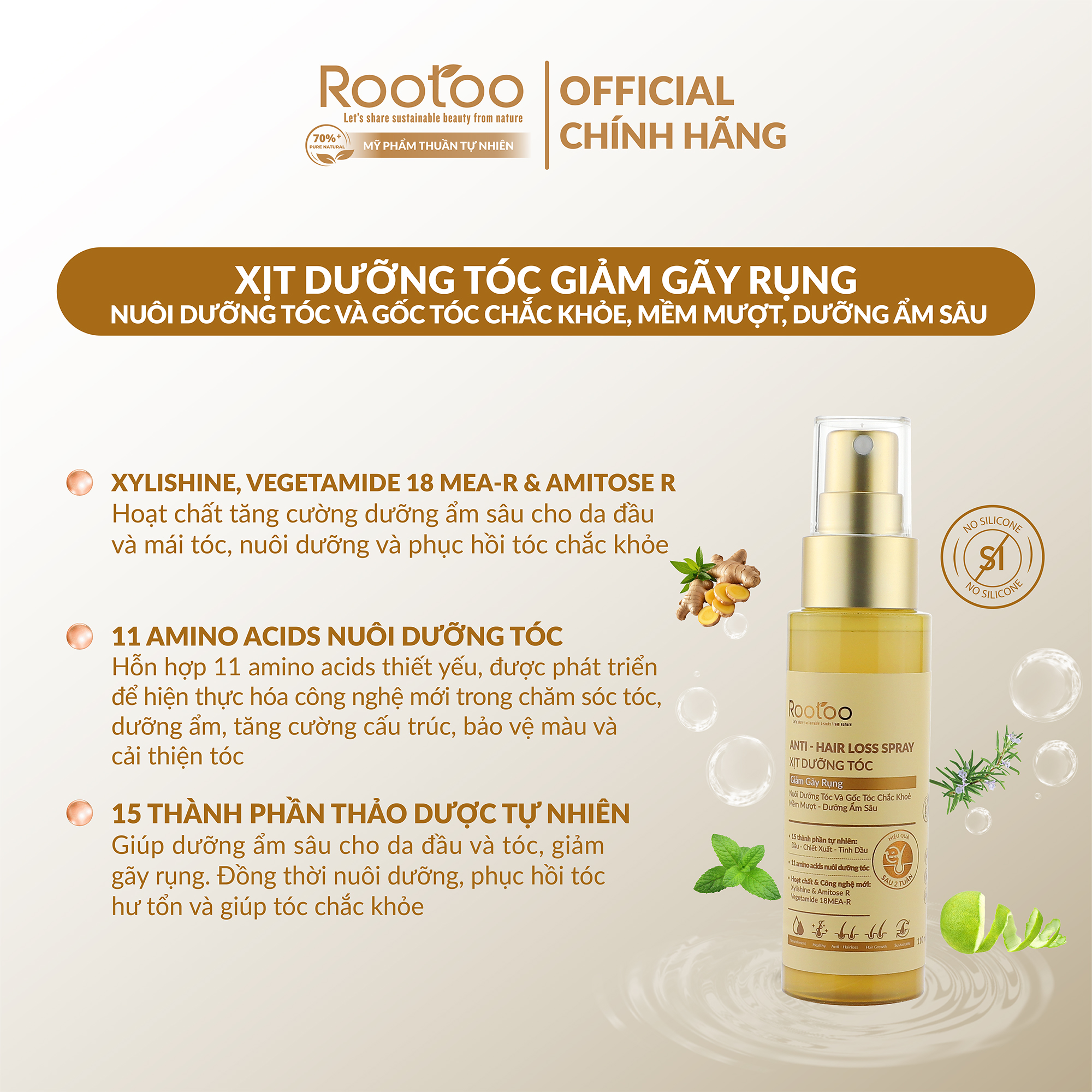 - Tên sản phẩm: Xịt Dưỡng Tóc Giảm Gãy Rụng Rootoo