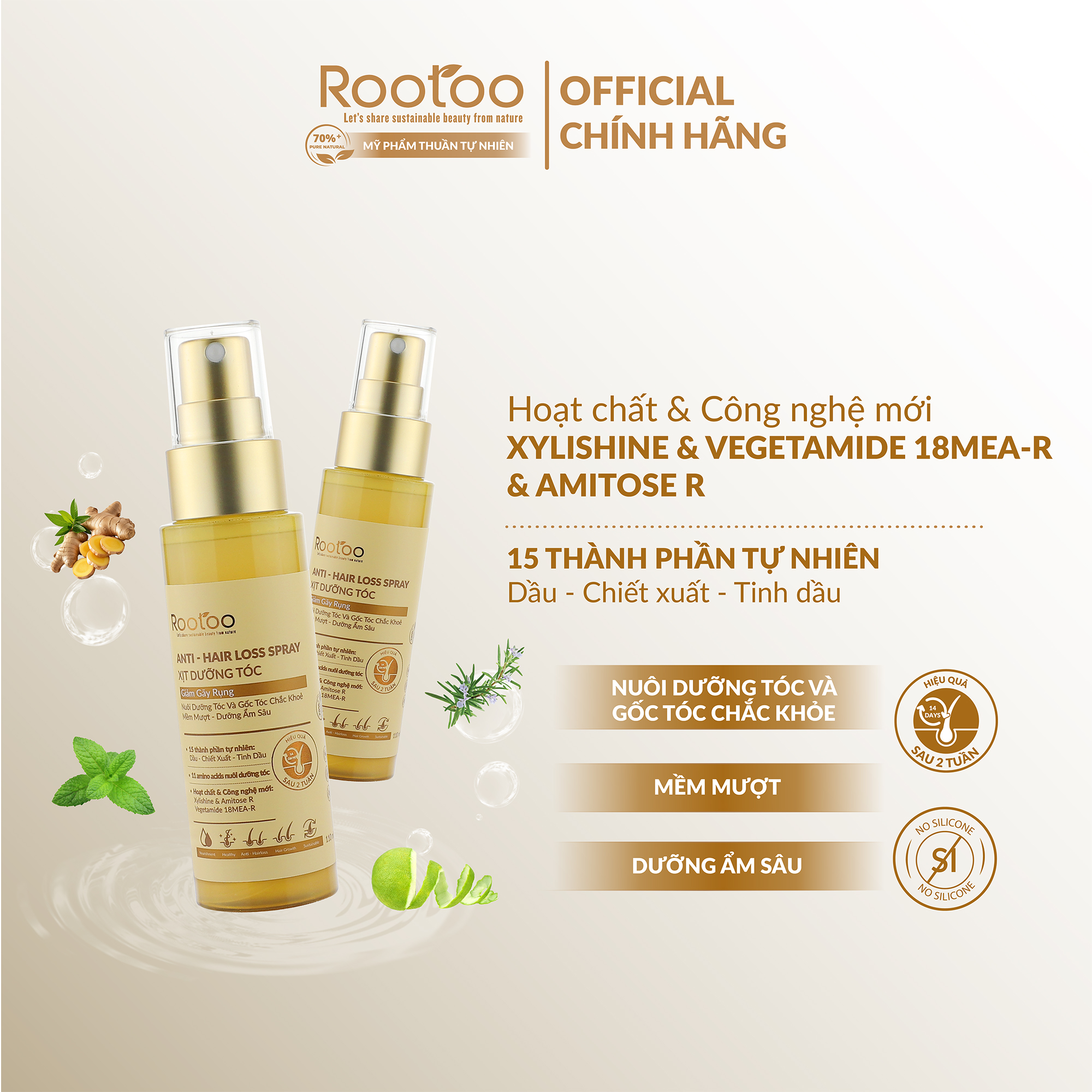 ✨Xịt Dưỡng Tóc Rootoo Thuần Tự Nhiên Giúp Dưỡng Ẩm, Kích Thích Mọc Tóc Và Phục Hồi Hư Tổn 110ml