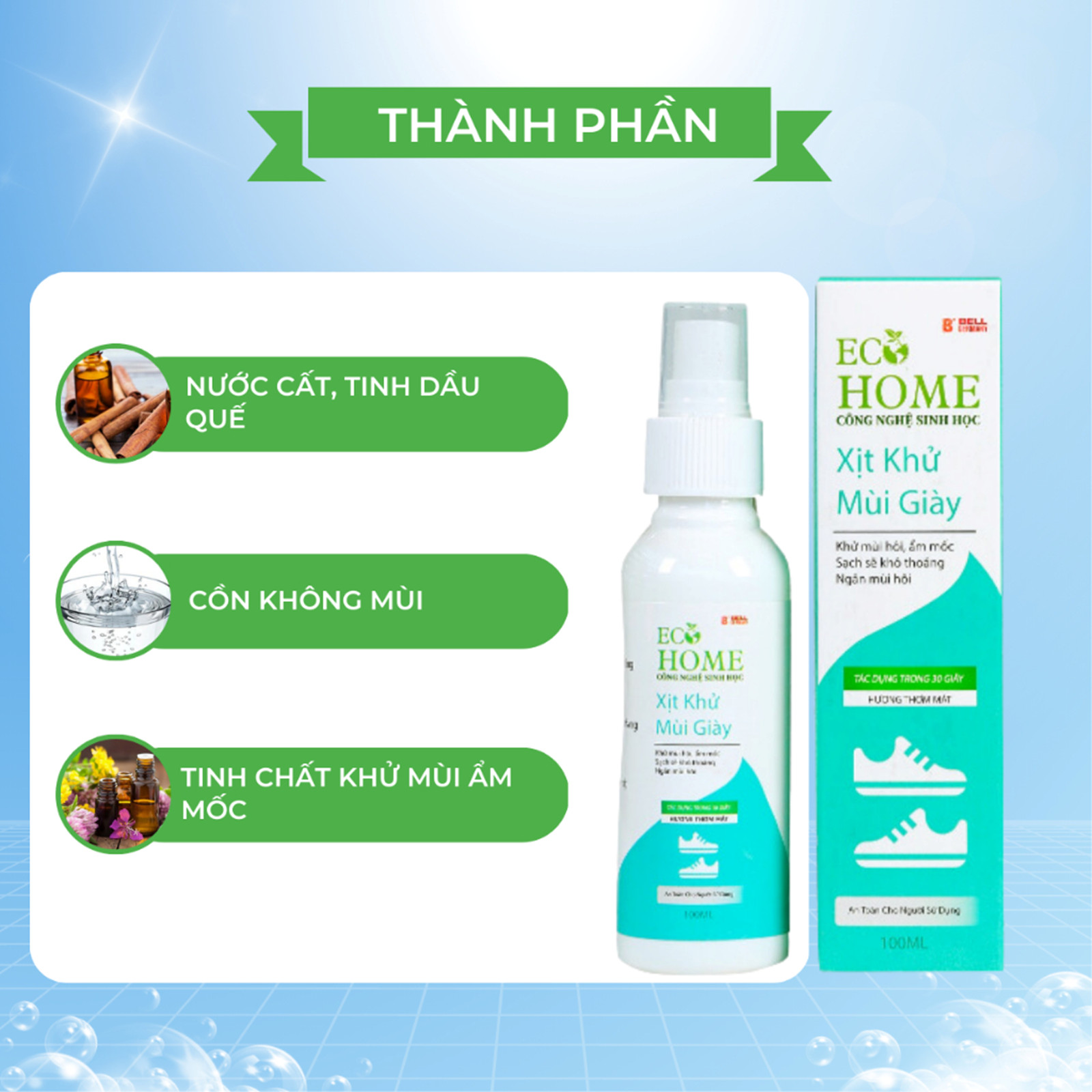 ✨Xịt Khử Mùi Giày ECOHOME-Xịt Khử Mùi Giày ECOHOME Kim Ngân Store Giúp Đôi Chân Luôn Thoáng Mát, Sảng Khoái Chai 100ml