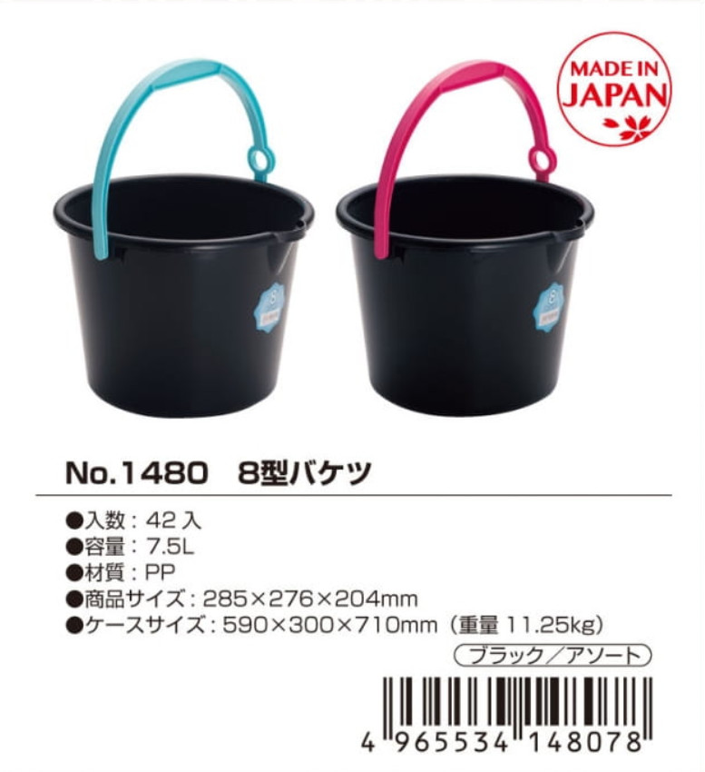 ✨Xô nhựa có quai xách Yamada 7.5L - màu đen, làm từ nhựa PP cao cấp - nội địa Nhật Bản