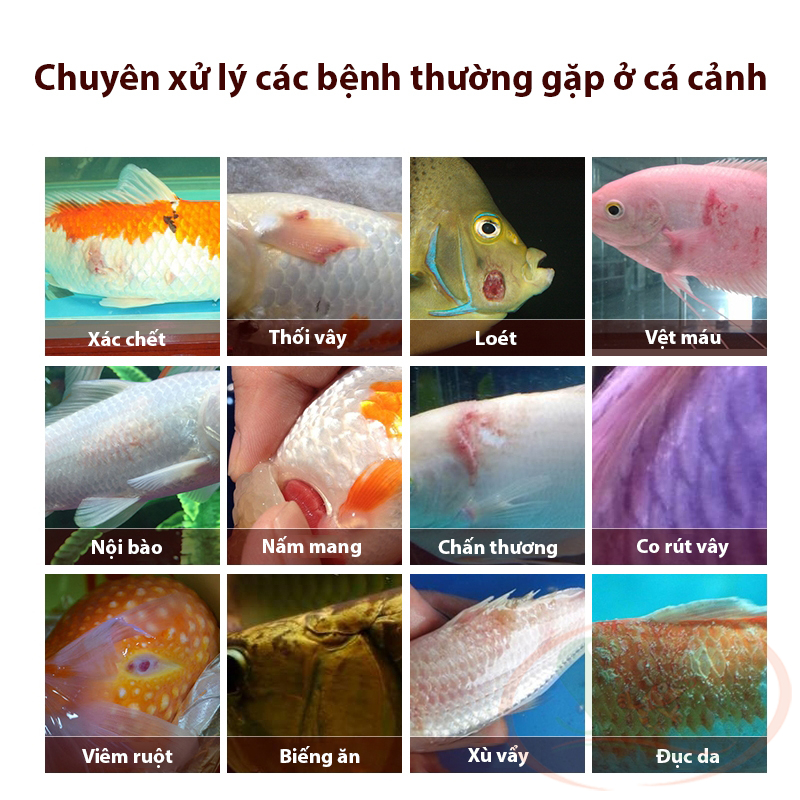 Trị ký sinh trùng trên cá như ngoại ký sinh trùng (sán đơn chủ, rận cá), nội ký sinh trùng (sán lá gan, sán dây).