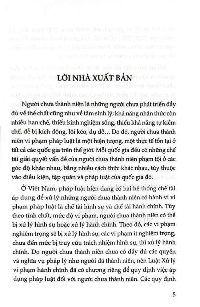 Cuốn sách phân tích cơ sở lý luận và pháp lý; đánh giá thực trạng pháp luật, thực trạng xử phạt vi phạm hành chính đối với người chưa thành niên, từ đó đề xuất các giải pháp để hoàn thiện pháp luật và nâng cao hiệu quả xử phạt vi phạm hành chính đối với người chưa thành niên.