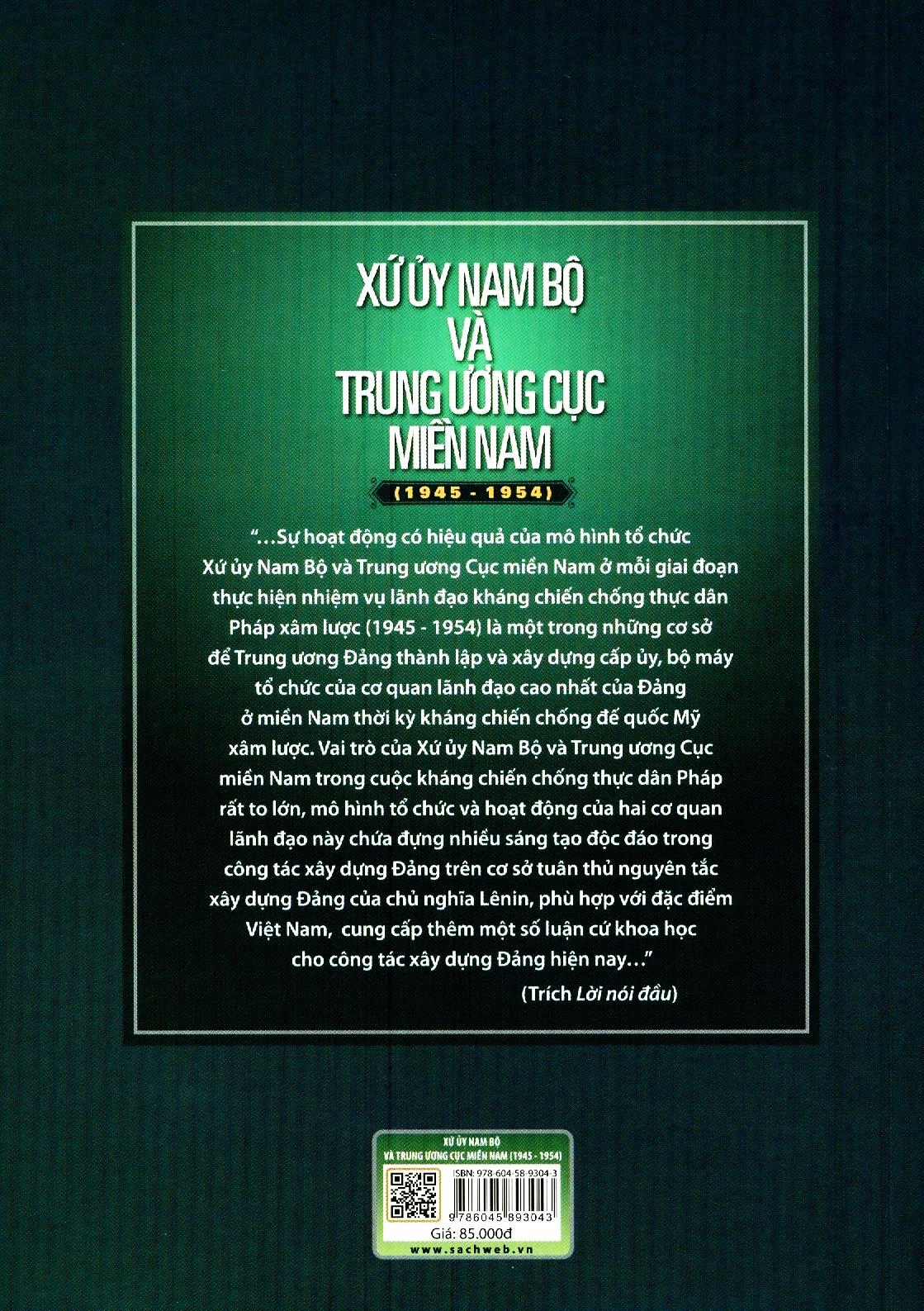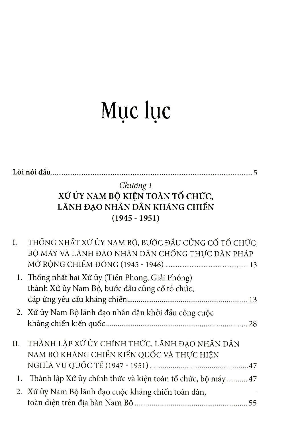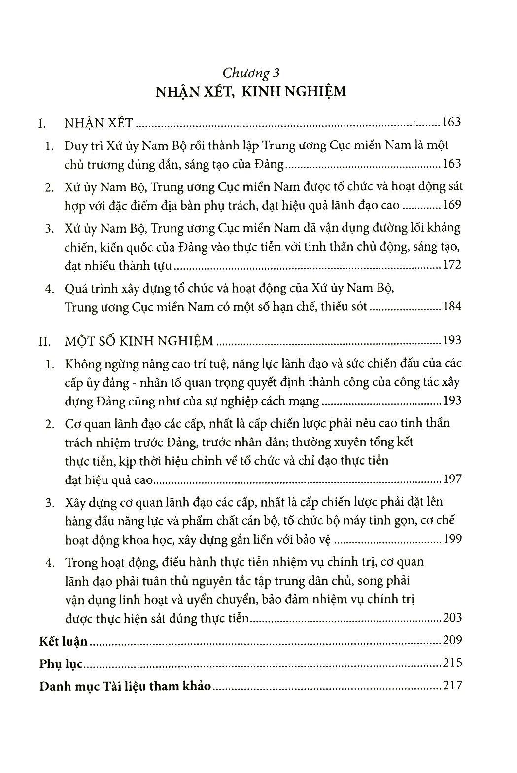 Cuốn sách làm sáng rõ quá trình xây dựng, đặc điểm tổ chức, hoạt động và vai trò của cơ quan lãnh đạo của Đảng ở Nam Bộ trong kháng chiến chống thực dân Pháp xâm lược trên địa bàn được phân công phụ trách.